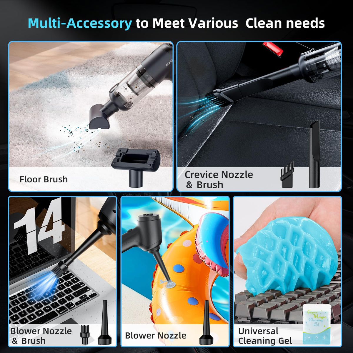 Ax2V Portable Car Vacuum 16000Pa Mini Vacuum Cleaner For Car, Low Noise Hand Vacuum Cordless Rechargeable, With Cleaning Gel For