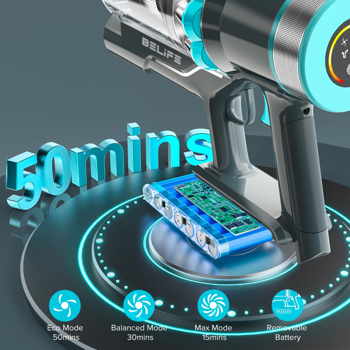 Belife Bvc11 Cordless Vacuum Cleaner, 450W 38Kpa Stick Vacuum With 50 Mins Runtime, 13000Rpm Burshless Motor, Powerful Vacuum Cl