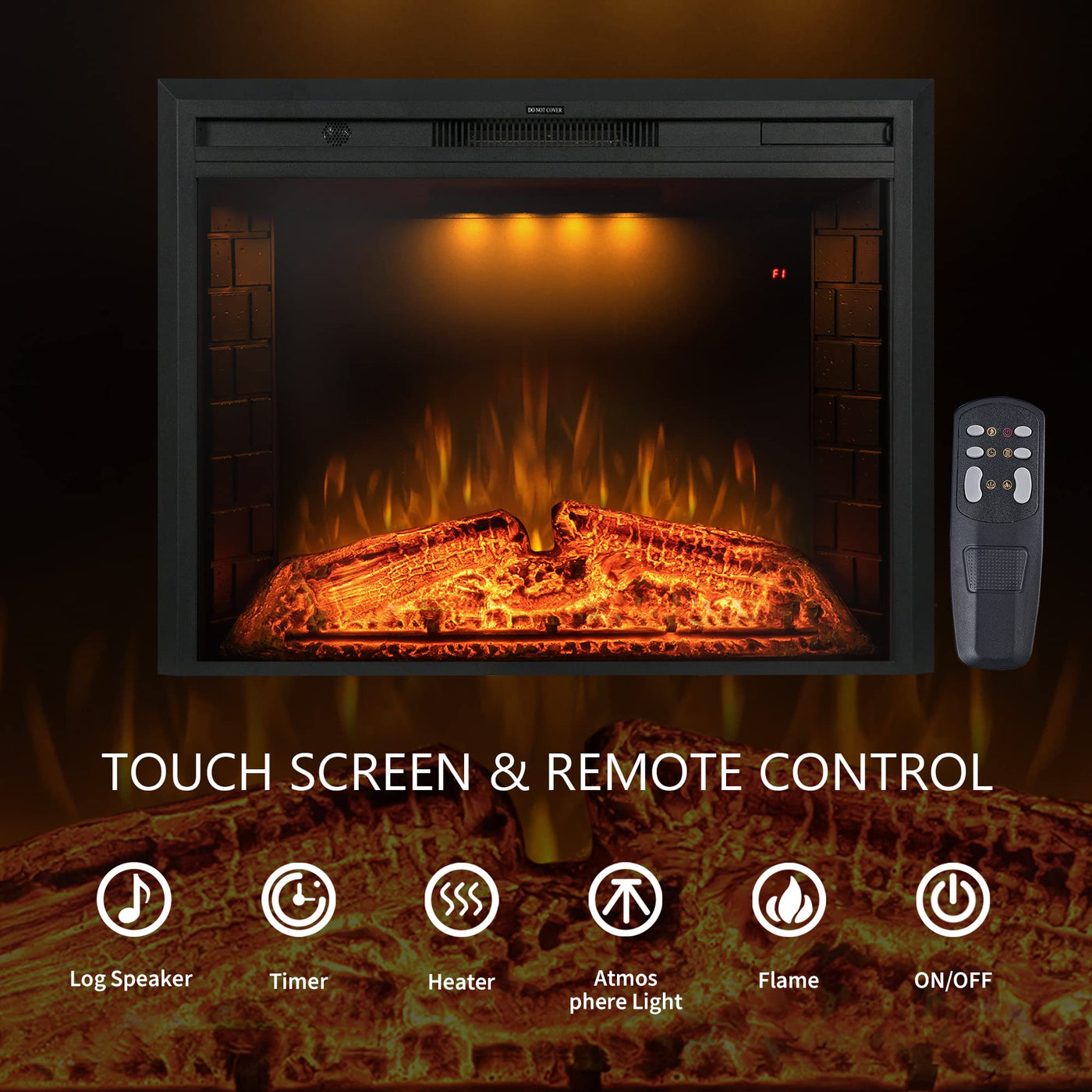 Benrocks 36'' Electric Fireplace Inserts, Recessed & Built In Wall Electric Fireplace Heater With Fire Crackling Sound, Adjustab