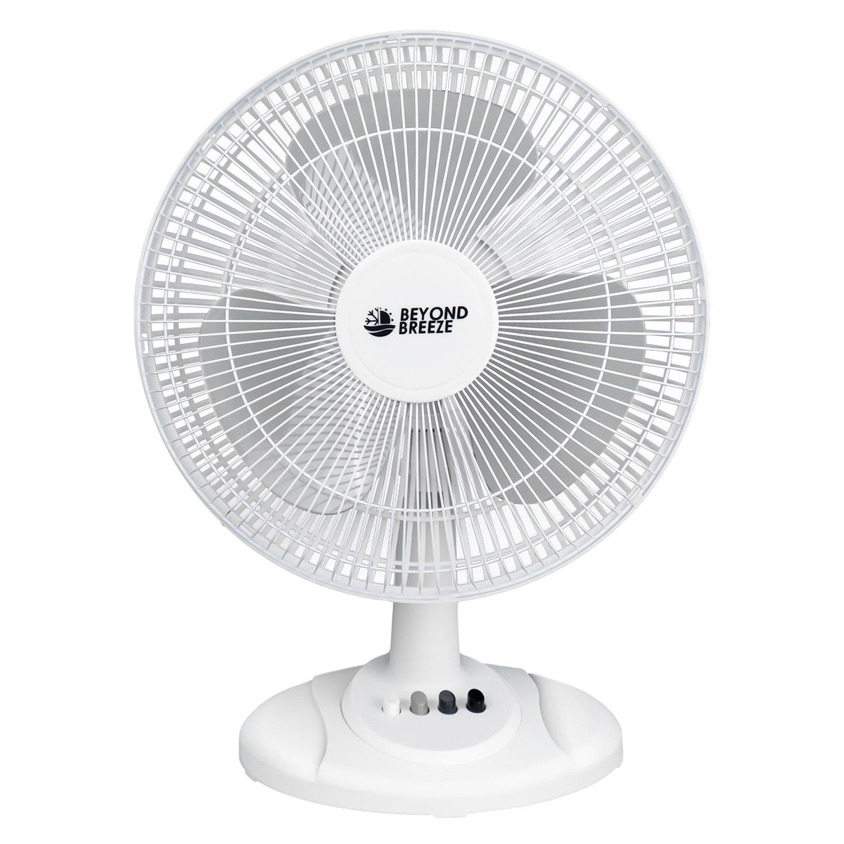 Beyond Breeze 12'' Oscillating Table Fan Is Designed To Comfortably Meet Most Of Your Cooling Needs During The Summer Months.Why Choose Our 3-Speed Adjustable Tilt Table Fan?3 Powerful Speed-Settingsselect Your Level Of Comfort With High, Mid Or Low Airflow.Quiet Operationboasting A Motor That Is Virtually Silent, This Quiet Office Fan Will Not Interrupt Your Studying Or Office Work With A Loud Hum Or Any Other Annoying Noises.Adjustable-Tilt Fan Headtilt Back Your Fan Head For Focused Cooling Power.Motorized Oscillation Multi-Directional Oscillation Cools Larger Areas Faster And More Efficiently.A Focus On Safety And Durabilitybuilt To Last, This Small Oscillating Table Fan Includes A Sturdy Metal Grill That Protects The Blades From Debris.Quick And Easy Assemblydesigned For Convenience, This Quiet Room Fan Is Easy To Assemble And Attach To The Accompanying Plastic Fan Base In Just A Few Minutes.
