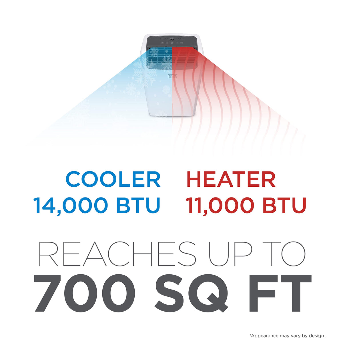 Black+Decker Air Conditioner, 14,000 Btu Air Conditioner Portable For Room And Heater Up To 700 Sq. Ft. With Remote Control, Whi