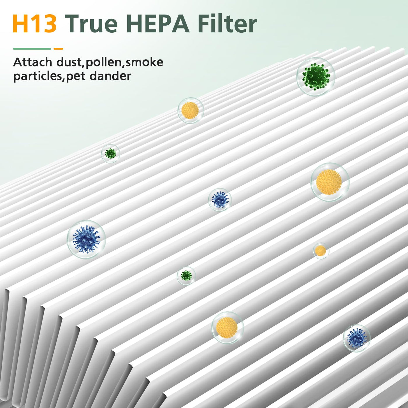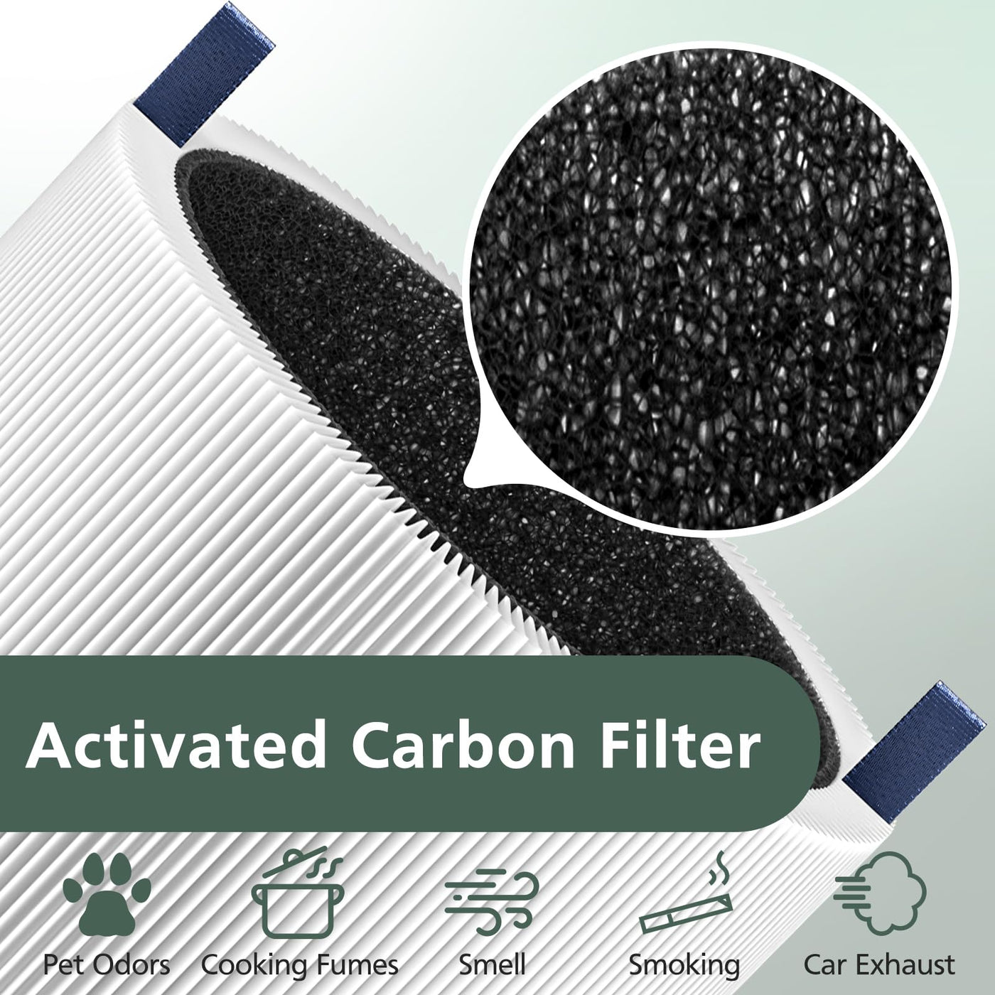 Q: What materials are used in the Blue Pure 511 replacement filter?A: The Blue Pure 511 replacement filter is made from high-quality non-woven fabric incorporating premium H13 True HEPA material and activated carbon, ensuring superior filtration performance and durability.