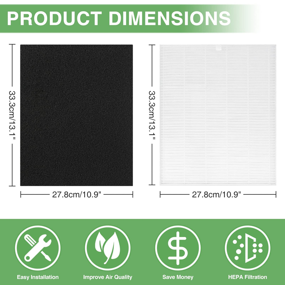 Q: What materials are used in the C545 HEPA and carbon filters?A: The C545 replacement filters are made from high-quality non-woven fabric for the H13 True HEPA Filter, which ensures effective filtration. The activated carbon filters help eliminate unpleasant odors and gases, providing a fresher air environment.