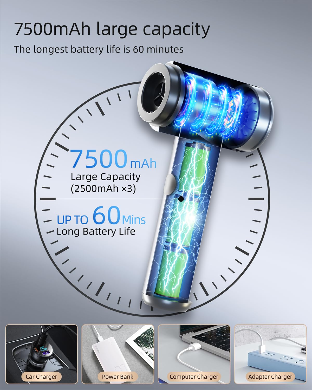 This Portable Car Vacuum Cordless Is Designed For Versatility And Convenience. As A 4-In-1 Multifunctional Car Vacuum, It Effortlessly Tackles Tasks Like Vacuuming, Blowing, Inflating, And Dust Removal. Perfect For Cleaning Car Interiors, Desks, And Pet Hair, It Doubles As A Portable Vacuum Cleaner For Home And Office Use. Whether Its Tight Spaces In Your Car Or Tricky Corners At Home, This Portable Vacuum Cleaner For Car Is The Ideal Cleaning Companion. Equipped With A High-Efficiency Brushless Motor, This Portable Vacuum Cordless Offers Two Adjustable Suction Modes, Delivering Up To 20000Pa Of Power To Remove Stubborn Dirt And Debris. The Lightweight Design And Cordless Portability Make It Easy To Carry And Use Anywhere, Whether At Home Or On The Go. With A Built-In 7500Mah Rechargeable Battery And Type-C Fast Charging, This Portable Vacuum Cordless For Car Provides Up To 30 Minutes Of Uninterrupted Cleaning. The One-Touch Dust Removal Button And Reusable Hepa Dual Filter Ensure Effortless Maintenance, Saving You Time And Effort.