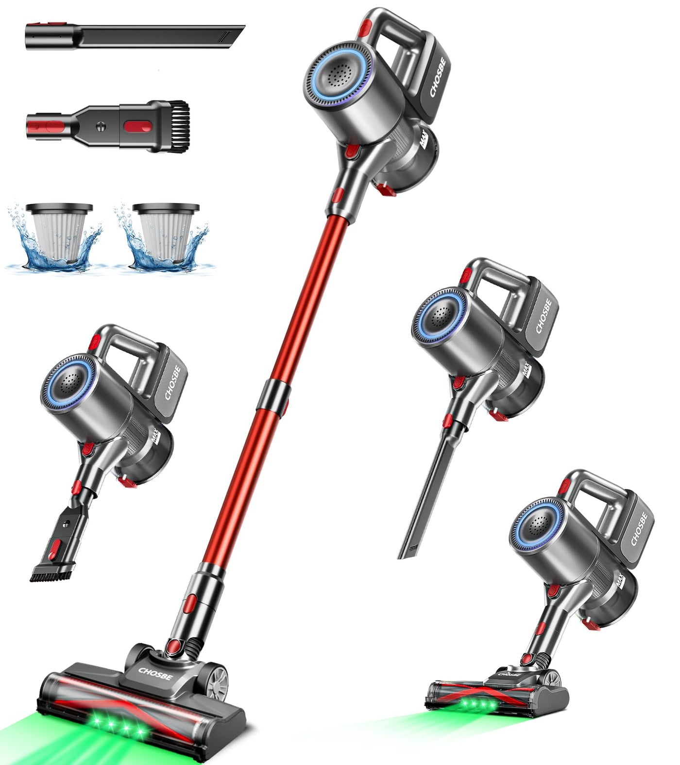 Chosbe Cordless Vacuum Cleaner, 500W/40Kpa Stick Vacuum With 45Mins Runtime, Self-Standing Vacuum Cleaners For Home, Anti-Tangle, 1.5L Dust Cup, Rechargeable Vacuum For Hardwood Floor Carpet Pet Hair ?500W/40Kpa Powerful Suction?Chosbe Cordless Vacuum Cleaner Is Equipped With A 500W Efficiency Brushless Motor And 2 Suction Modes, Provides Super Suction Power Of 40Kpa In Max Mode. Quickly Picks Up Dust, Debris, Pet Hair And Stains To Easily Clean A Variety Of Surfaces Including Carpet, Tile, Hardwood And Marble Floors.No Noise, Ensuring A Quiet And Comfortable Cleaning Experience For You And Your Family. ?Up To 45Mins Runtime? Cordless Vacuum With A 6X2800Mah Large-Capacity Batteries.It Lasts Up To 45 Mins Of Efficient Cleaning In Min Mode And Up To 20 Mins In Max Mode. One Full Charge Lets You Clean Your Entire House Without Interruption. Say Goodbye To The Hassle Of Frequent Charging! ?Self-Standing Design And Lightweight?This Cordless Stick Vacuum Cleaner Features A Self-Standing Design, You Can Place It Anywhere In Your Home Without Drilling Holes Or Hanging On The Wall. Vacuum Cleaner Is Lightweight And Easy To Use, Ergonomically Designed To Reduce Stress On Your Wrists And Back, Perfect For Quick Cleaning And Long Hours Of Use Without Fatigue. Ideal For Everyday Cleaning Tasks.