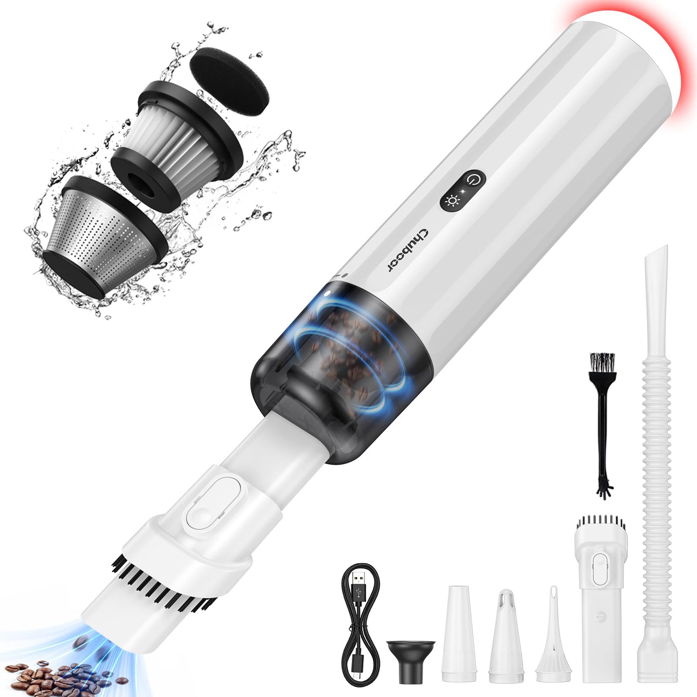 Chuboor Car Vacuum Cleaner High Power Cordless Rechargeable, 13000Pa Powerful Handheld Vacuum, Portable Mini Vacuum With Led Sos Light, Small Hand Held Vacuuming Cordless, Dust Busters(P16-White)