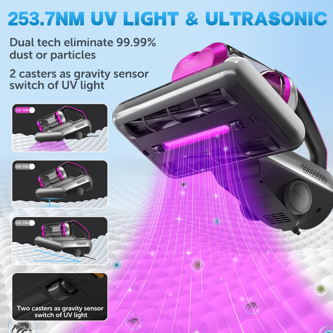 Q: What is the benefit of the UV-C technology in this vacuum cleaner?A: The UV-C technology emits a 253.7nm UV light that penetrates deeply into mattresses and fabrics, eliminating unseen bacteria and allergens, thus ensuring a healthier sleeping environment for you and your family.
