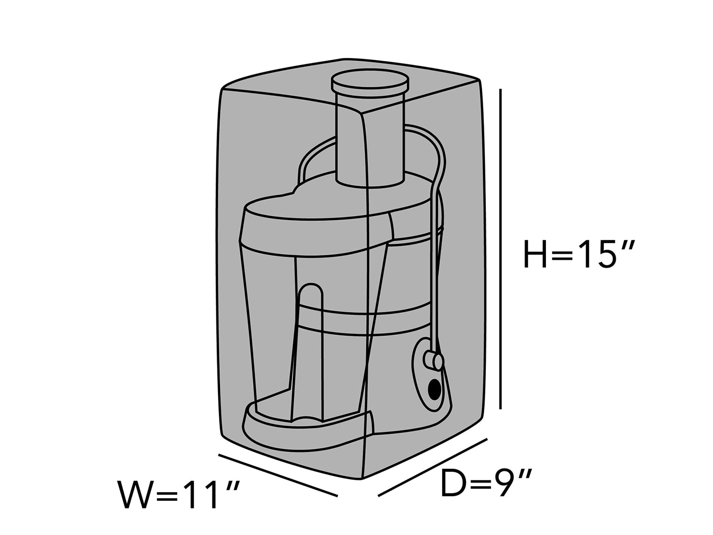 Q: What is the size of the Covermates appliance cover?A: The dimensions of the Covermates appliance cover are 11 inches wide, 9 inches deep, and 15 inches high, making it suitable for a variety of small kitchen appliances.