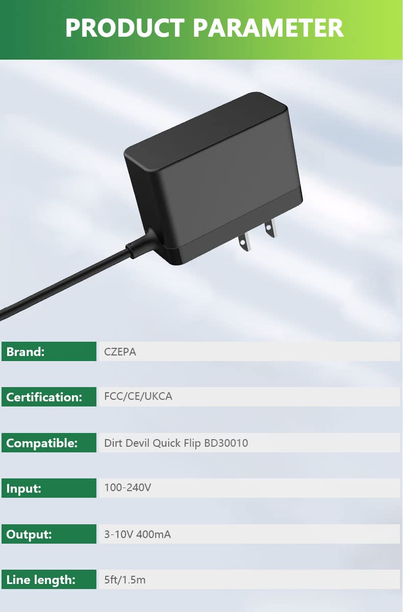 Czepa 8V Charger Compatible With Dirt Devil Quick Flip Replacement 8V Handheld Vacuum Bd30010 Partnamber 440009122 Power Supply