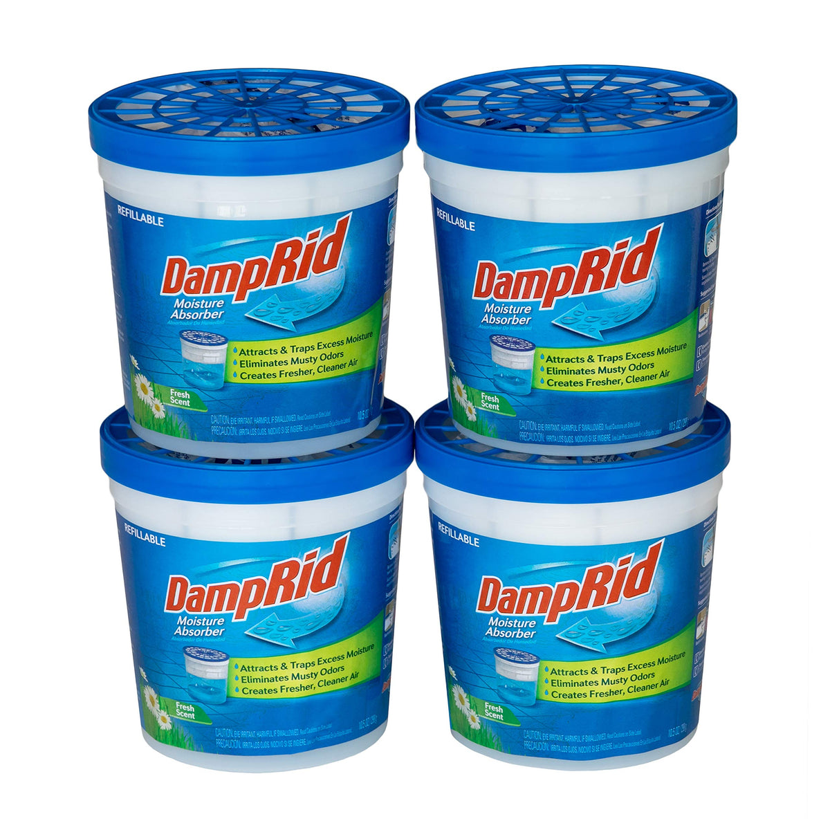 Damprid Refillable Moisture Absorber, 10.5 Oz. Cups, 4 Pack, Fresh Scent, Traps Moisture For Fresher, Cleaner Air, No Electricit