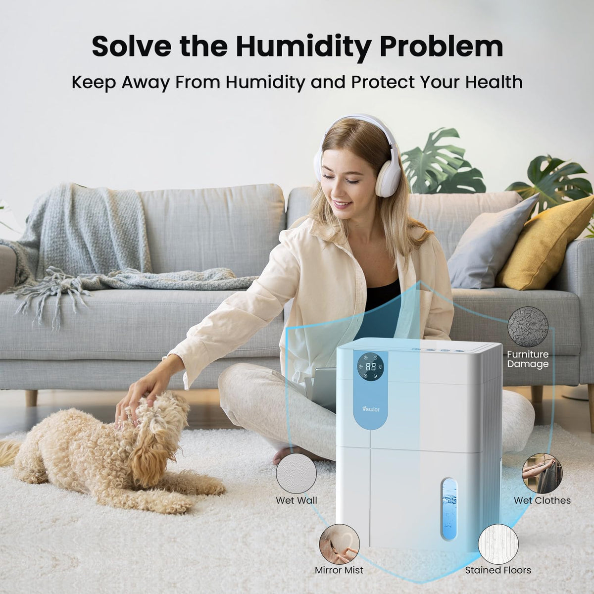 Q: What size area can the VEWIOR Dehumidifier effectively cover?A: The VEWIOR Dehumidifier is designed to effectively cover areas up to 900 square feet, making it suitable for use in various spaces such as basements, bedrooms, bathrooms, and closets.