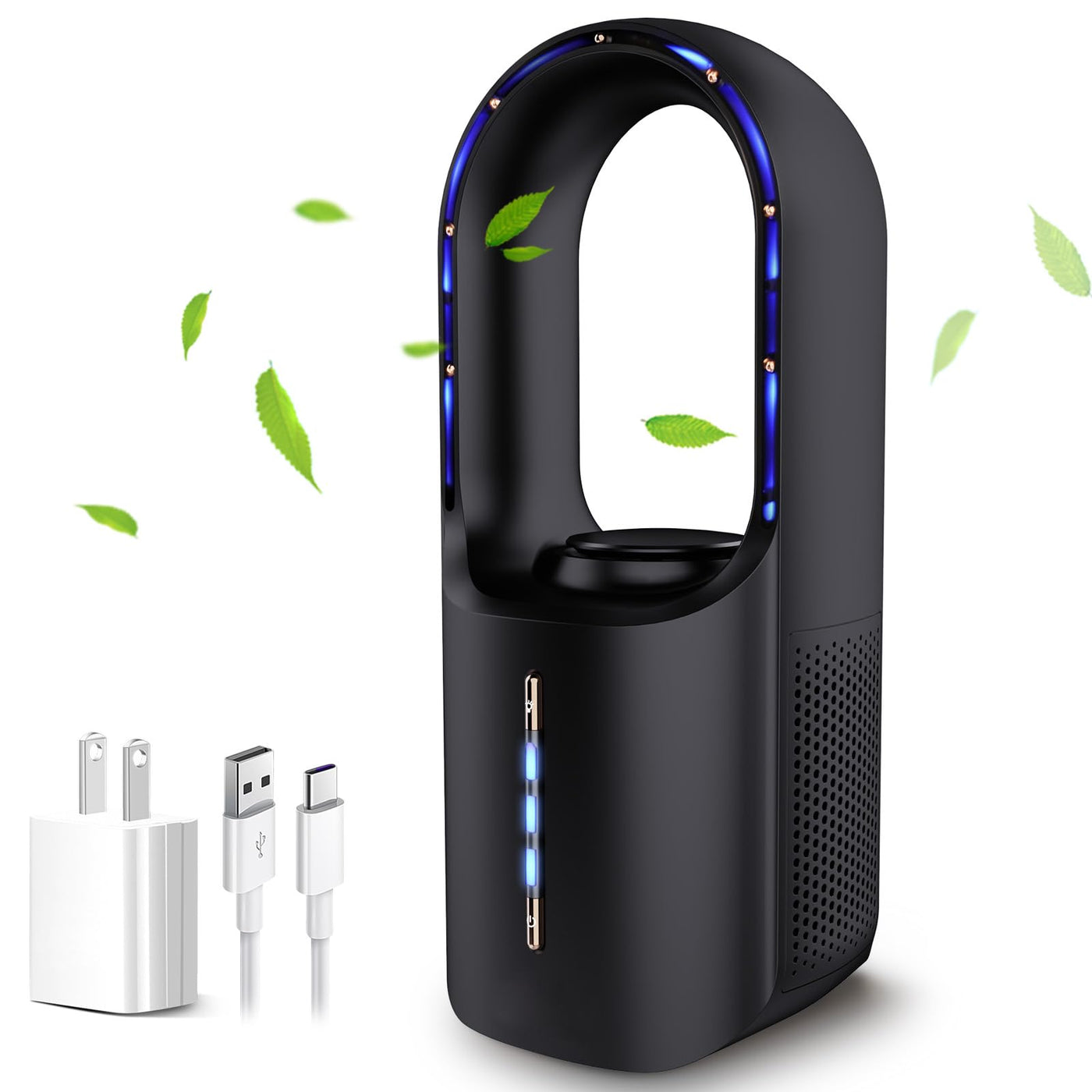 Desk Fan Bladeless,Desk Fans Small Quiet 11.8 Inch Small Fan,Personal Fan,Cooling Fan With 3 Wind Speed, Led Light,Desk Fan Smal