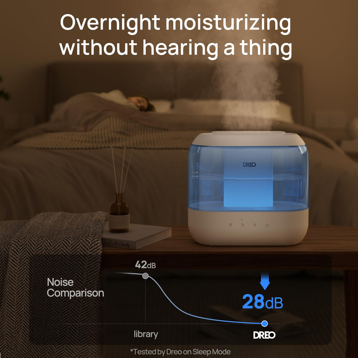 ???? ?????????? ???????? ?????? ???????????????????? ??????????????: Enjoy Quiet Sleep Without Congestion, Coughing, Or Dry Mouth, Dreos Ultrasonic Atomization Brings Noise Down To 28Db, While Its 4L Tank Provides Up To 32 Hours Of Moisture Without The Need To Refill. | ????????-?????? ???????????????????????????? ??????????????????????: Powered By Dreos Dual-Intake And 4-Inch Mist Outlet Design, This Humidifier Creates A Supersized Mist Of Up To 40 Inches Tall For Humidifying Bedrooms, While Bringing Faster Dry Air Relief To Help You Breathe Easy And Healthy. | ?????????? ?????????????????? ??????-????????????: Thanks To Its High-Frequency Atomization Process, This Humidifier For Home Releases 5