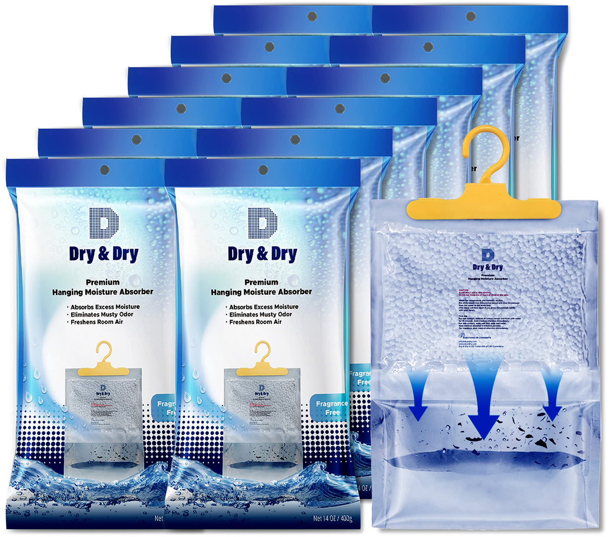 Dry & Dry 12 Pack[14 Oz] Premium Moisture Absorbers Dehumidifiers For Home Dehumidifier For Basement Dehumdifiers For Bedroom Sm