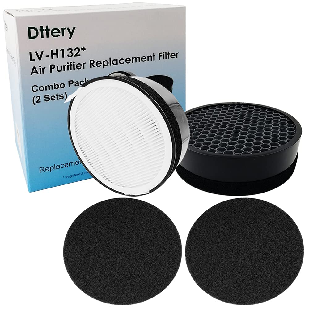 Dttery 2 Set Lv H132 Air Purifier Replacement Filter, True Hepa Filter, Lv H132 Rf, Compatible With Levoit Lv H132 Air Purifier