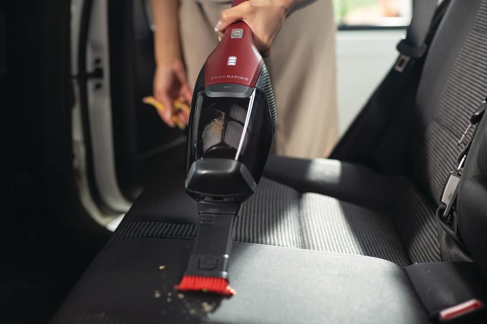 Q: How effective is the Electrolux Ergorapido Pet vacuum for removing pet hair?A: The Electrolux Ergorapido Pet vacuum features a motorized pet nozzle specifically designed to easily remove pet hair from furniture, car interiors, and other upholstered surfaces, making it highly effective for pet owners.