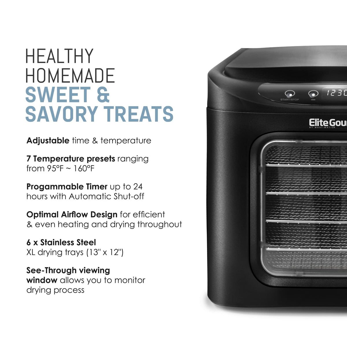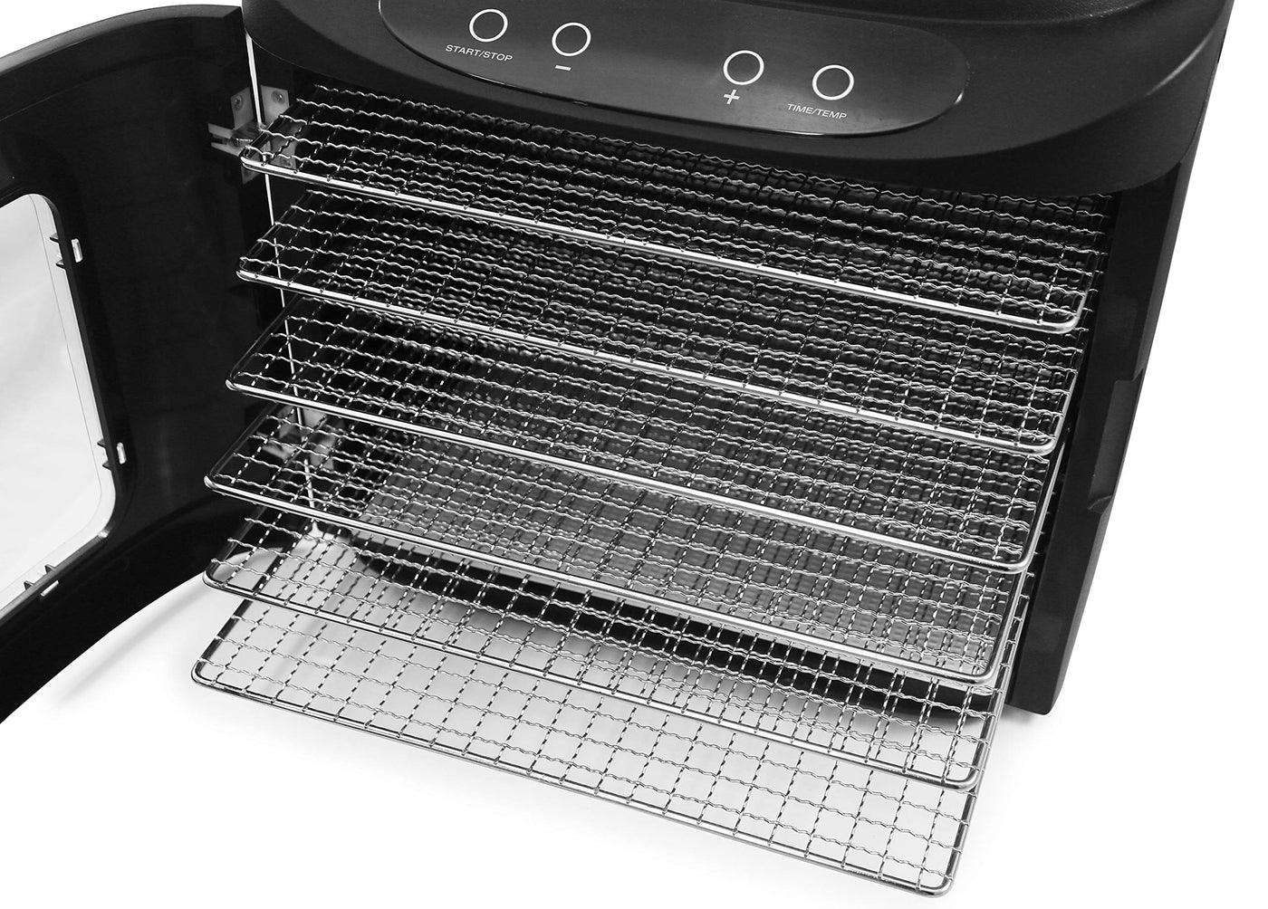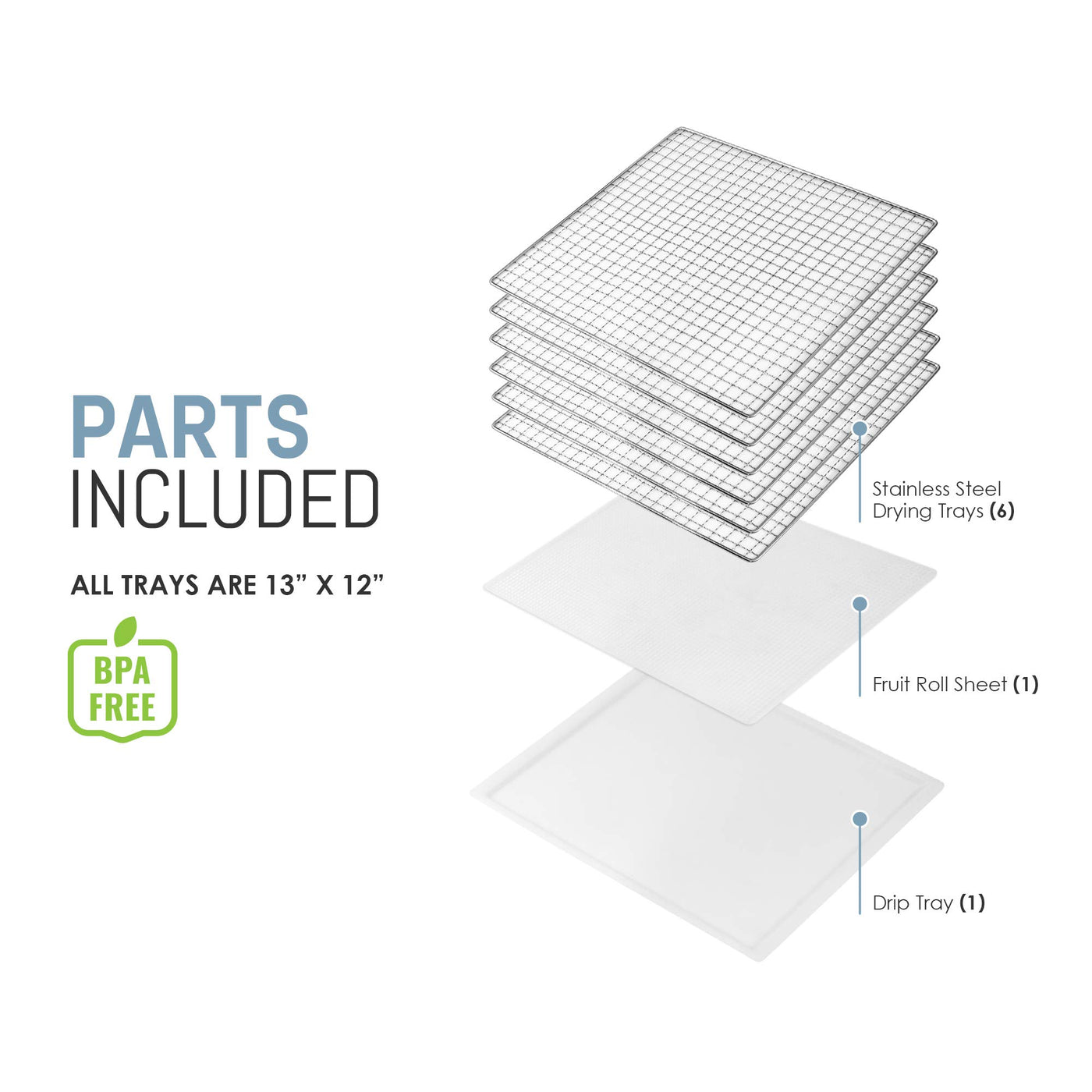 Save Money And Time By Creating Your Own Healthy Snacks. Its Sleek, Contemporary Design Features: 480 Watts Of Drying Power That Generates Maximum Speed And Quality For Dehydrating Fruits, Vegetables, Jerky, And Flowers. It Has Never Been So Easy To Whip Up A Batch Of Banana, Apple Or Kale Chips Or Dry Your Favorite Vegetables, Herbs And Even Flowers For Scented Potpourri; It Features A Swing-Out Door With Clear Viewing Window To Watch The Drying Progress And A Digital Control Panel With Adjustable Timer Ranging From 30-Min To 19-Hours. And Temperature Controls With An Adjustable Thermostat Ranging From 95F To 158F. And Of Course, An Automatic Shut Off System. Features A Rear Mounted Fan System: The Smooth Horizontal Heat Distribution Of Warm Air Quickly Dehydrates Your Food, Yet Preserves Its Vitamins, Nutrients, And Flavor. Use Your Own Recipes For Spicy Bbq Beef Jerky, Parmesan Kale Chips, And Strawberry Pineapple Fruit Leather Or Anything You Choose For Your Snacks, You Can Make Them All! Easily Program The Dehydrator The Night Before And Wake Up Healthy, Delicious, And Nutritious Snacks To Pack For School Or Work Lunches. Included Dishwasher Safe Parts: Six Removable Stainless Steel Dehydrating Trays (10. 5 X 11. 5''), Fruit Roll Sheet And A Drip Tray.