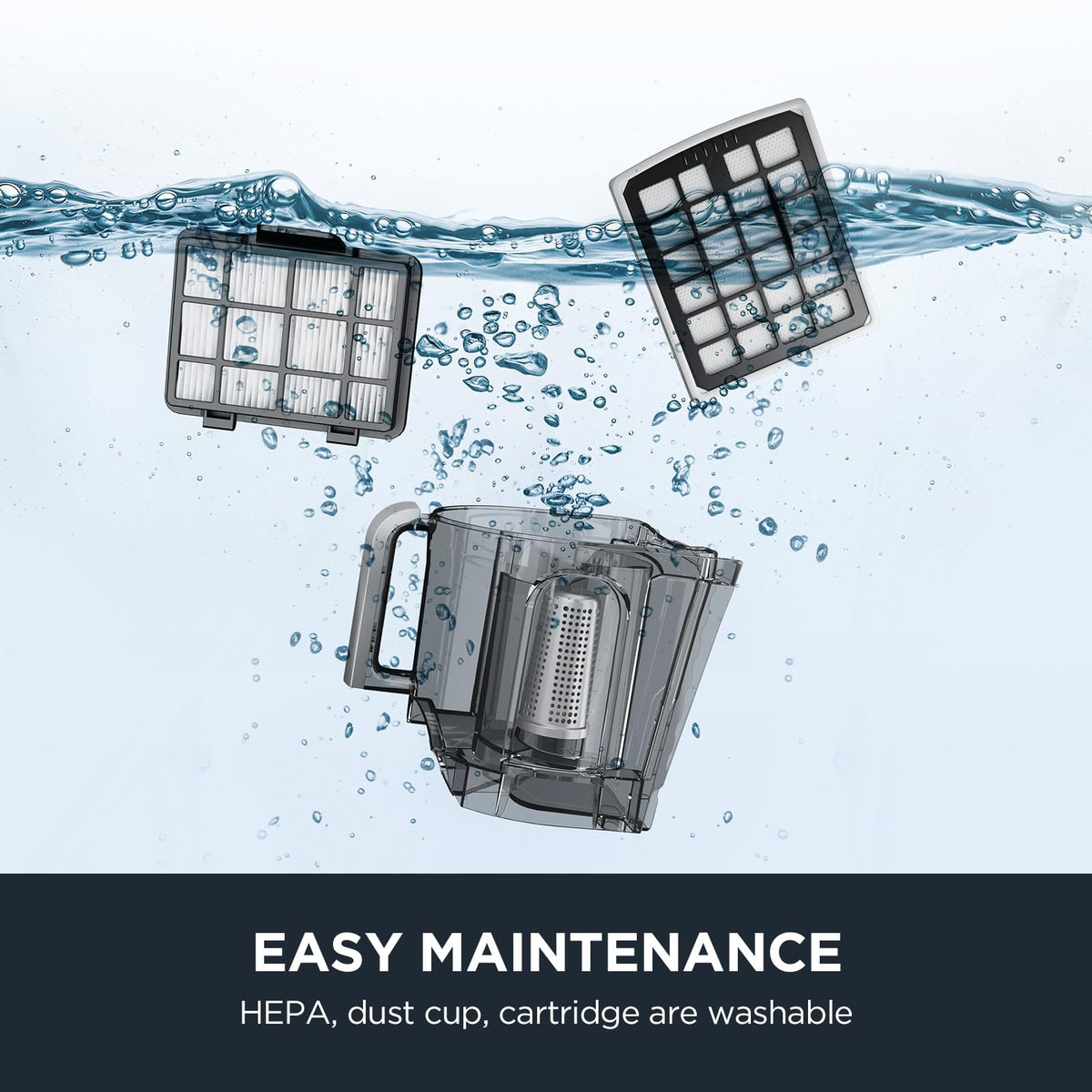 Q: Is the filter of the Eureka NEN180 vacuum cleaner washable?A: Yes, both the filter and the dust cup of the Eureka NEN180 can be washed directly with water, making maintenance easy and cost-effective with no additional consumables required.