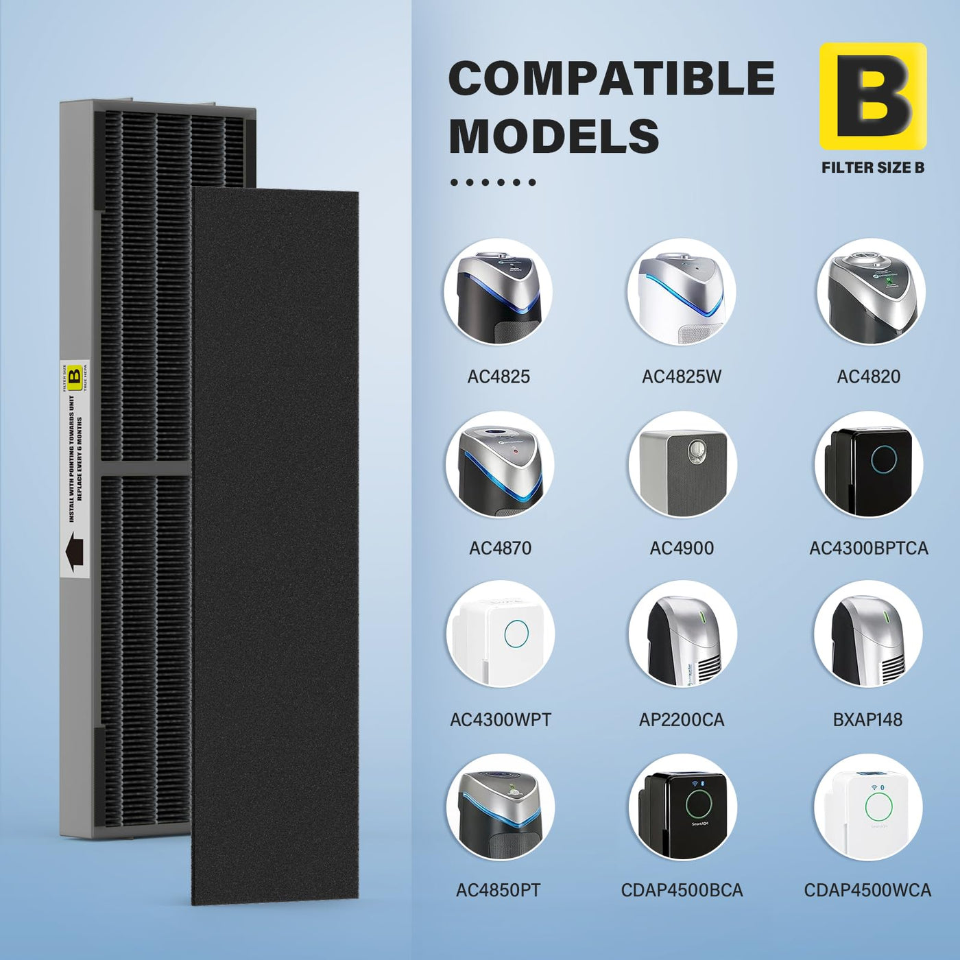 Fmdzfl Filter B Smoke Clear Hepa Replacement Compatible With Ac4825 Ac4300 Ac4800 Ac4900 Ac4850, 2 True Hepa Filters & 6 Activat