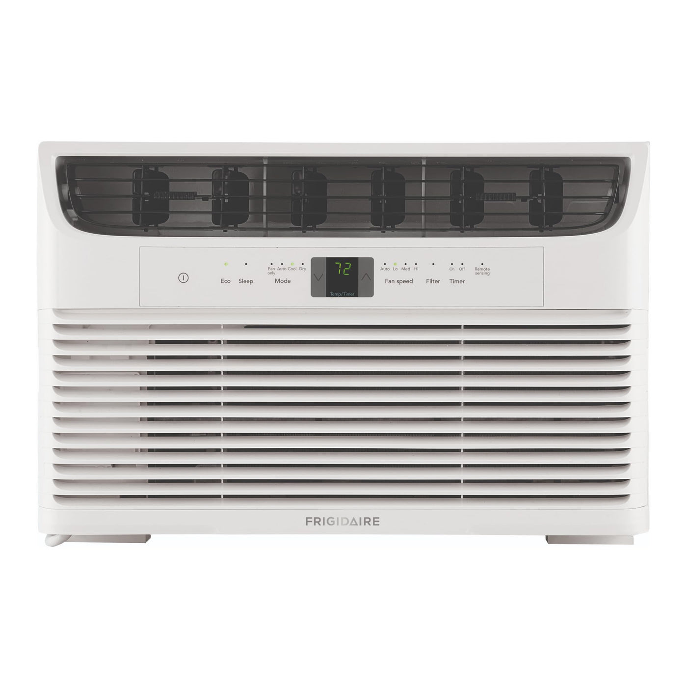 Keep your home cool and comfortable with the Frigidaire FHWC083TC1 8,000 BTU window room air conditioner. Operating at 115V and 720W, this energy-efficient AC unit is designed to cool areas up to 350 sq. ft., making it ideal for small bedrooms. Enjoy optimal cooling with multi-directional airflow, adjustable fan speeds, and a programmable 24-hour timer, allowing you to customize your comfort. Maintenance is simple with the easy-to-clean washable dust filter, while the Clean Filter alert keeps you informed to ensure your air conditioner performs optimally. With a quiet performance at 54 dBA, you can enjoy a cool and comfortable space without disruptions. The convenient remote control allows you to adjust settings from anywhere in the room. Experience ultimate comfort with this Frigidaire air conditioning unit.Frigidaire is committed to helping families make the most of their time and space with high-performing, easy-to-use appliances. Were here to make healthy meals yummier, favorite clothes last longer, and keep the air in homes fresher - shaping living for the better so we can live happier, healthier lives.