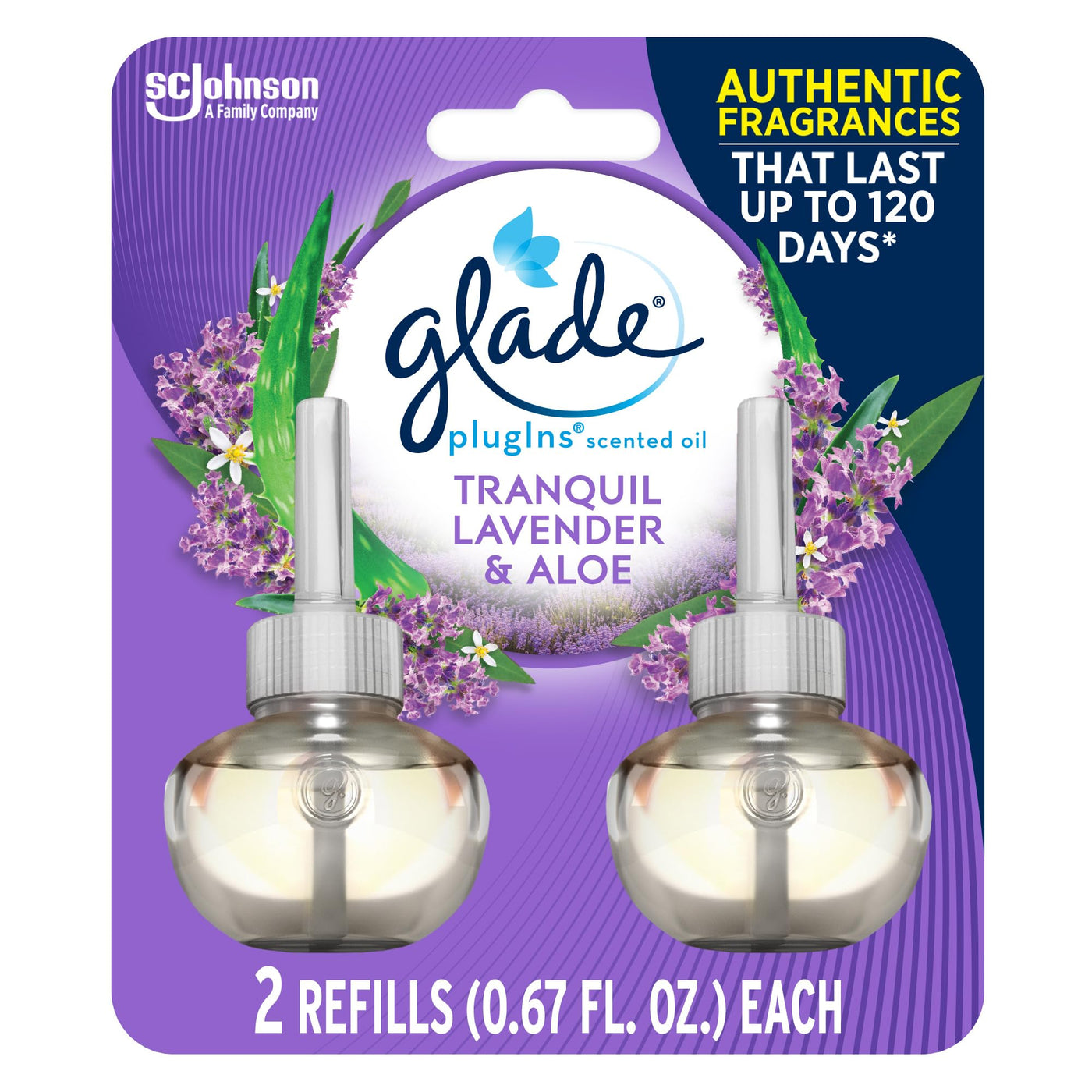 Make Every Day Bloom With New Glade Tranquil Lavender & Aloe Plugins Scented Oil, Our Most Authentic Lavender Fragrance Ever. Creating The Perfect Mood Is Just An Outlet Away With Glade Tranquil Lavender & Aloe Plugins Scented Oil, A Scented Oil Warmer You Can Adjust To Meet Your Fragrance Needs. Simply Fill The Scented Oil Warmer With A Glade Refill And Plug It In To Freshen A Room With The Long-Lasting Scent Of Refreshing Lavender. Thanks To The New Technology Used In The Glade Plugins Warmer You Can Enjoy Fragrances Longer And More Intensely. Featuring A 360-Degree Ceramic Heater And Precise Control, The Delivery Of Fragrance Is More Consistent & Authentic Than Ever Before. Each Glade Plugins Refill Lasts Up To 50 Days Per Refill, On Low Setting. Transform Your Home With New Glade Tranquil Lavender & Aloe Plugins Scented Oil - And Relax With Our Purest Lavender Air Freshener Fragrance Picked Fresh For Your Home.