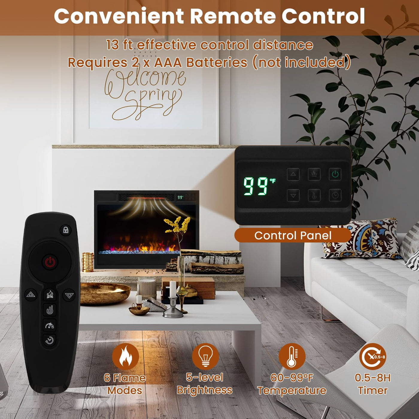 Description:Add Style And Warmth To Your Home With This 23 Inch Electric Fireplace Insert. This Electric Fireplace Insert Features A Stylish And Modern Design, With 6 Adjustable Flame Modes And 5 Levels Of Brightness To Create The Perfect Ambiance For Any Indoor Occasion. The Infrared Quartz Technology Provides A Comfortable And Warm Heating Effect. The Electric Fireplace Insert Comes With A Remote Control For Easy And Convenient Operation. With Overheat Protection, You Can Rest Assured That Your Family And Home Are Safe From Any Potential Fire Hazards. Whether You'Re Looking To Add Some Cozy Warmth On A Chilly Evening Or Just Looking For A Stunning Decorative Piece, This Electric Fireplace Insert Is The Perfect Choice For Any Home.Features:Adjustable Flame And Brightness With Breathing Effect For More Elegancenote: Brightness Cannot Be Adjusted In Polar Modeinfrared Quartz Tube And Heating Resistor Wire For High Heating Efficiency1500W Powerful Heating Keeps You Away From Coldness In Wintereasy To Operate With Remote Control And Control Panelsafe To Use With Child Lock, Overheat Protection And Csa Certification0.5-8H Timer For Convenient Auto Turn-Off60F - 99 F Thermostat Control For Better Indoor Temperaturesleep Mode Is Perfect For A Sound Sleep3 Operating Ways: Flame Only, Flame & Heat, Sleep Modespecifications:Color: Blackmaterial: Metal, Tempered Glass, Psoverall Dimension: 25 X 5 X 18 (L X W X H)Length Of Power Cord: 6 Ftnet Weight: 19 Lbsvoltage: 120Vfrequency: 60Hzpower: 1500Wamp: 12.5 Ampbtu: 5120 Btubattery Required: 2 X Aaa Batteries (Not Included)Package Includes:1 X Electric Fireplace1 X Remote Control1 X Instruction