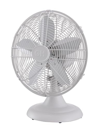 Good Housekeeping All Metal (92602) Oscillating 12'' Retro Desk Office Table Fan (Matte White)