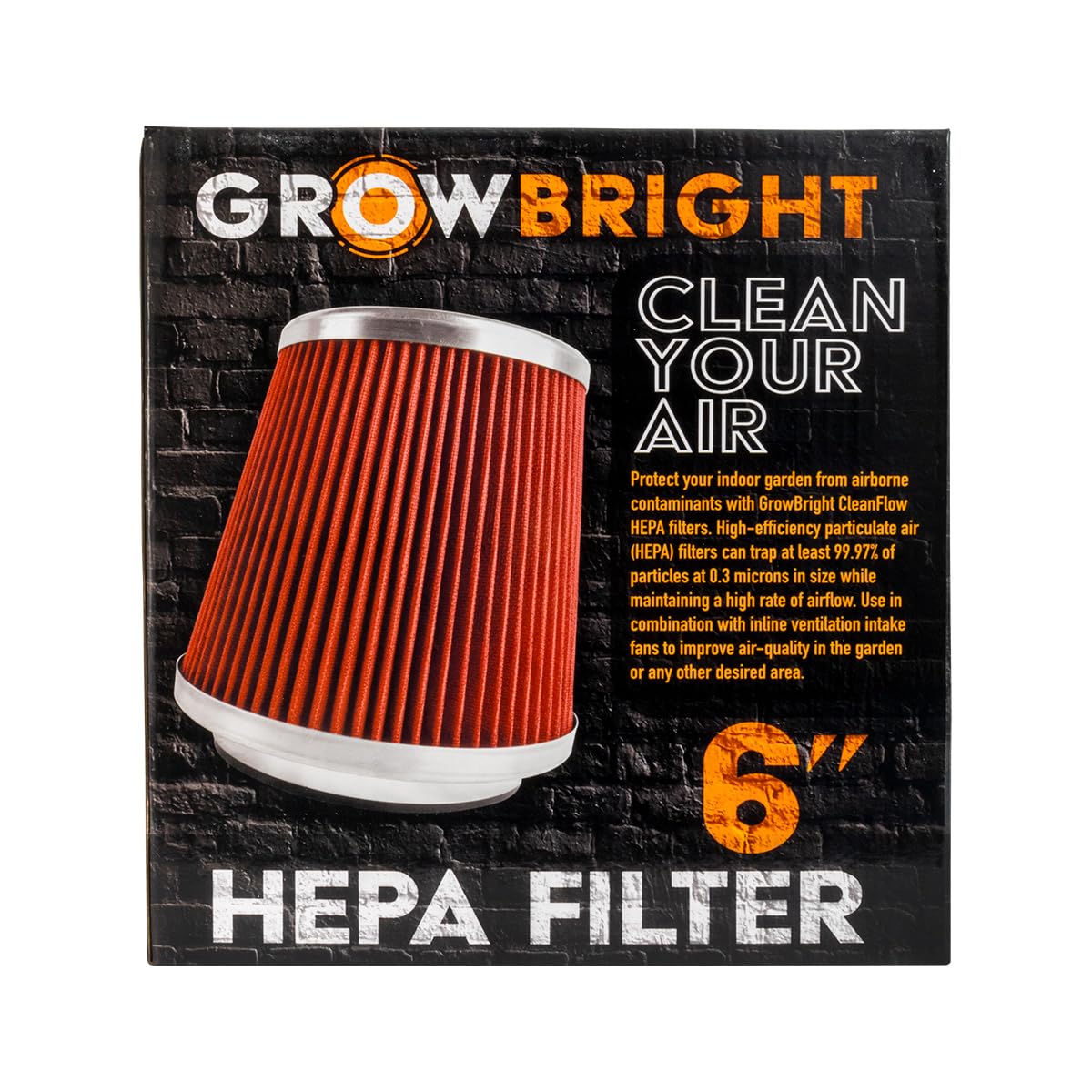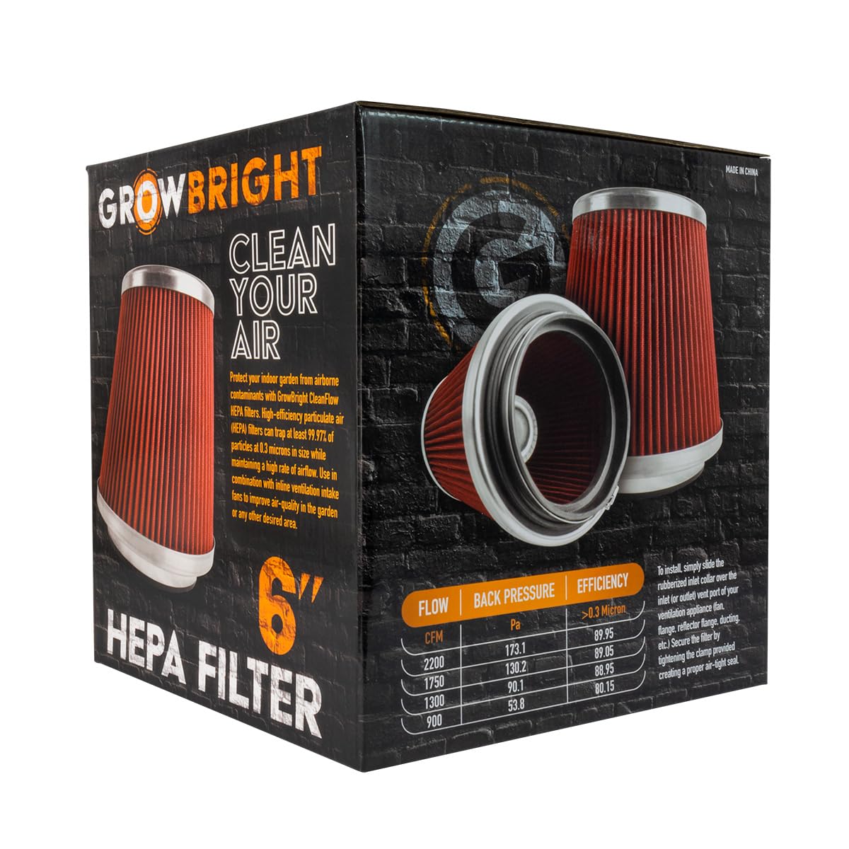 Improve Air Quality In The Grow Area With Growbright Cleanflow Hepa Filters. Growbright High Efficiency Particulate Arrestance (Hepa) Filters Remove 99.97% Of Airborne Particles At .3 Micrometers. Highly Efficient Filtration With Excellent Airflow Also Makes Growbright Cleanflow Hepa Filters The Most Effective Option For Keeping Expensive Air-Cooled Lighting Equipment Clean And Free Of Debris. Cleanflow Hepa Filters Install Easily Over Rigid Duct/Flanging And Secure Tightly With A Rubberized Collar And Steel Clamps For A Proper Seal, And They Can Also Be Washed As Needed For Extended Life. Simply Remove And Spray With A Water Hose To Clean.Please Note: Hepa Filters Are Recommended For Use With High-Velocity Inline Fan Or Blower Fan Units As They May Create Too Much Restriction For Smaller Fan Types Such As Duct Booster Or Small Axial Fans.