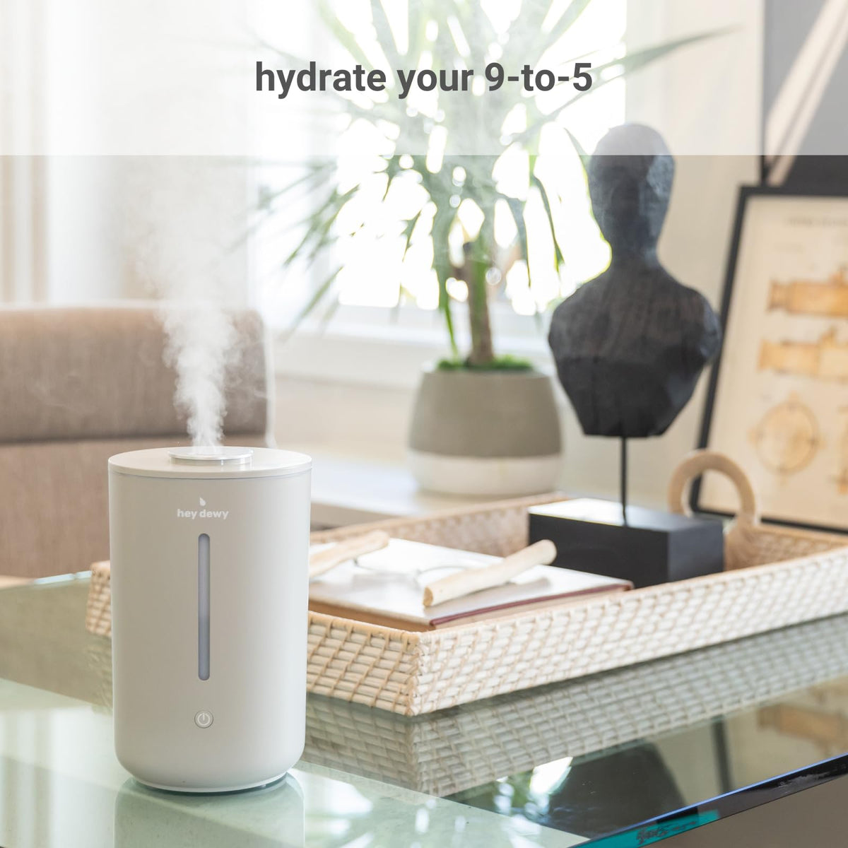 Introducing The All-New Hey Dewy Wellness Humidifier That Transforms Your Space To A Spa. Still Compact, Yet Five Times The Capacity Of Its Portable Counterpart, This Beautifully Designed Device Matches Your Elevated Style While Humidifying Your Entire Room.