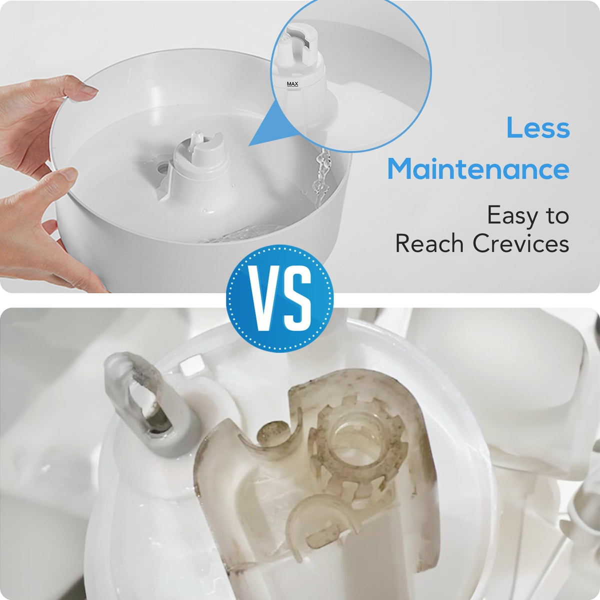 Q: How do I clean the Levoair humidifier?A: Cleaning the Levoair humidifier is easy thanks to its detachable water tank with a 9.8-inch opening. Simply remove the tank, fill it with water and a mild detergent, and scrub gently to ensure all corners are thoroughly cleaned. Rinse and dry before refilling with water.