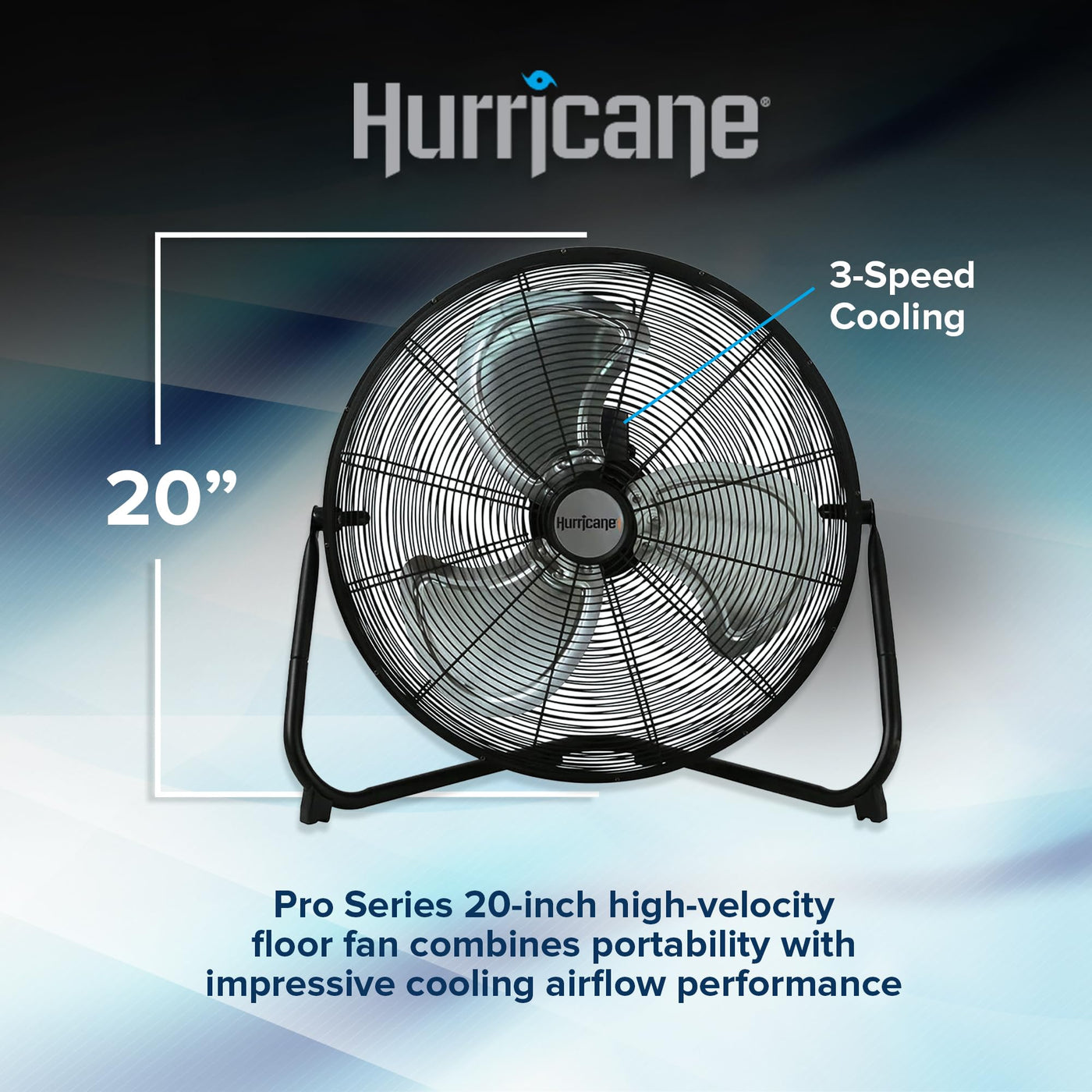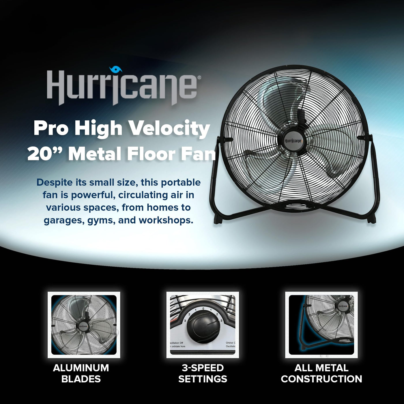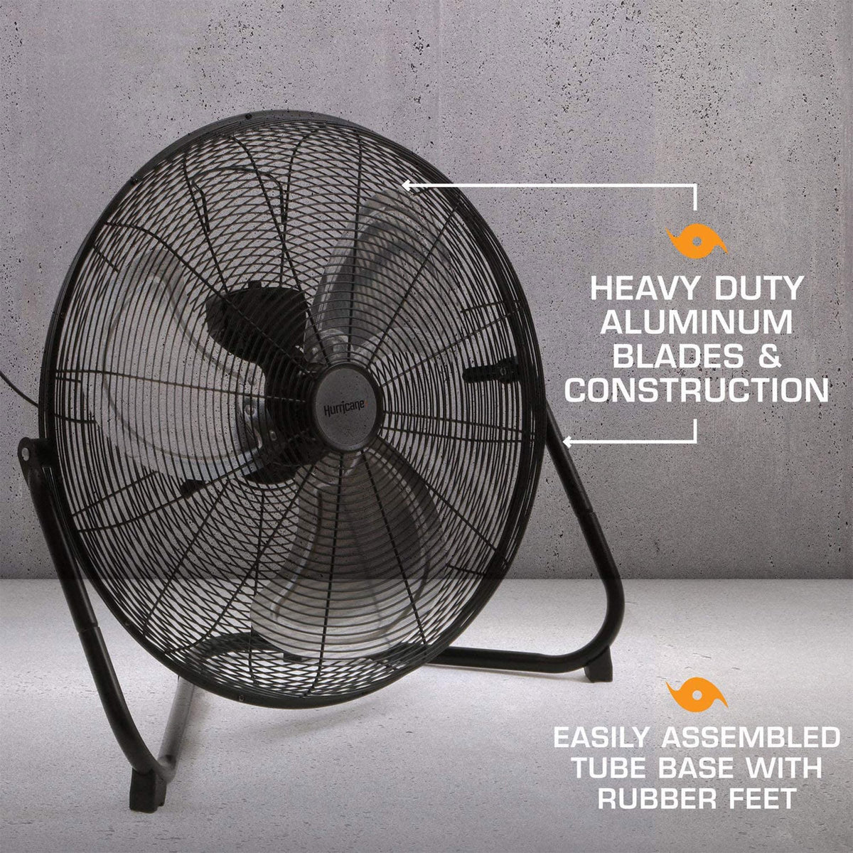 Feel The Breeze Of Efficiency And Power With The Hurricane Pro 20'' High Velocity Metal Floor Fan. Engineered For Those Who Demand Robust Airflow Without Compromise, This Fan Is Your Ultimate Companion For Home, Gym, Garage, Or Workshop. Whether You'Re Beating The Heat During Summer Workouts Or Enhancing Air Circulation In Industrial Settings, This Fan Promises To Keep You Comfortably Cool. Crafted With Durability In Mind, The Hurricane Pro 20'' Features Heavy-Duty Aluminum Fan Blades And A Sturdy Black Powder-Coated Finish. It Boasts A Mighty 5300 Cfm Airflow And Operates At 1450 Rpm, Ensuring Rapid Air Movement That Reaches Every Corner Of The Room. Adjust The Airflow With Ease Using Its Three-Speed Settings And Customize The Tilt To Direct The Breeze Exactly Where You Need It Most. Assembly Is A Breeze With Its Intuitive Design - Just Snap Together The Tube Base And Secure It With The Floor-Gripping Rubber Feet, And You'Re Ready To Go. The Fan'S Thoughtful Features Include Built-In Overload Protection, Providing Peace Of Mind During Extended Use. With A 6 Ft Power Cord For Flexibility And Etl Listing For Safety, The Hurricane Pro 20'' Is Designed For Efficiency And Longevity. Ideal For Both Residential And Commercial Use, This Floor Fan Stands Tall As A Reliable Solution For Maintaining Optimal Airflow And Comfort. Elevate Your Space With The Hurricane Pro 20'' High Velocity Metal Floor Fan - Where Power Meets Precision, And Cool Meets Convenience.