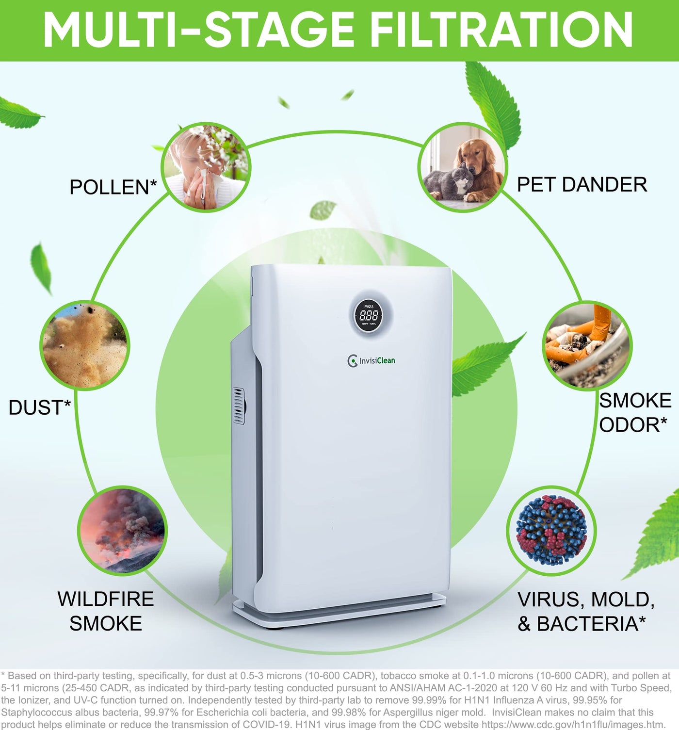 Invisiclean Claro Air Purifier For Large Room, Bedroom, Home Over 1600 Sq Ft, Zero Ozone, Uv Light, H13 Medical Grade True Hep