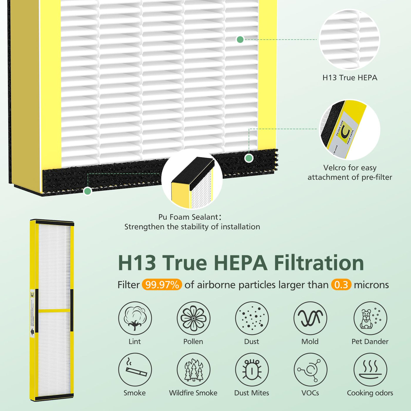 Q: What is the significance of H13 True HEPA in air filtration?A: H13 True HEPA filters are highly efficient and can capture at least 99.97% of particles as small as 0.3 microns, including dust, pollen, and pet dander. This high level of filtration significantly improves indoor air quality, making it ideal for allergy sufferers.