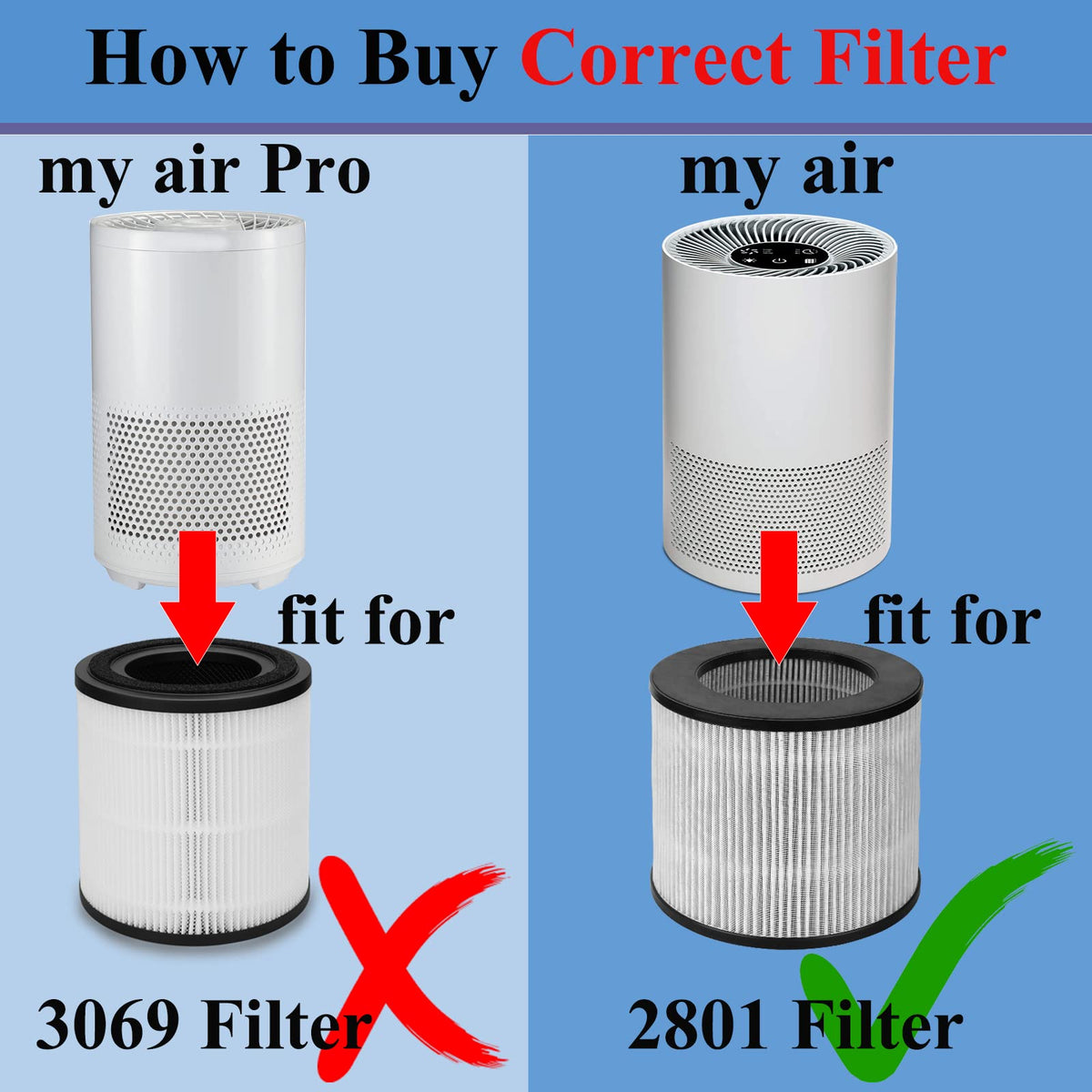 Q: What models are compatible with the KEYJINIU 2801 Replacement Filter?A: The KEYJINIU 2801 Replacement Filter is compatible with Bissell models 2801, 2780, 2780A, and 27809 MYair Personal. Please note that it does not fit the MYair Pro 3069 filter or MYair HUB 3389.