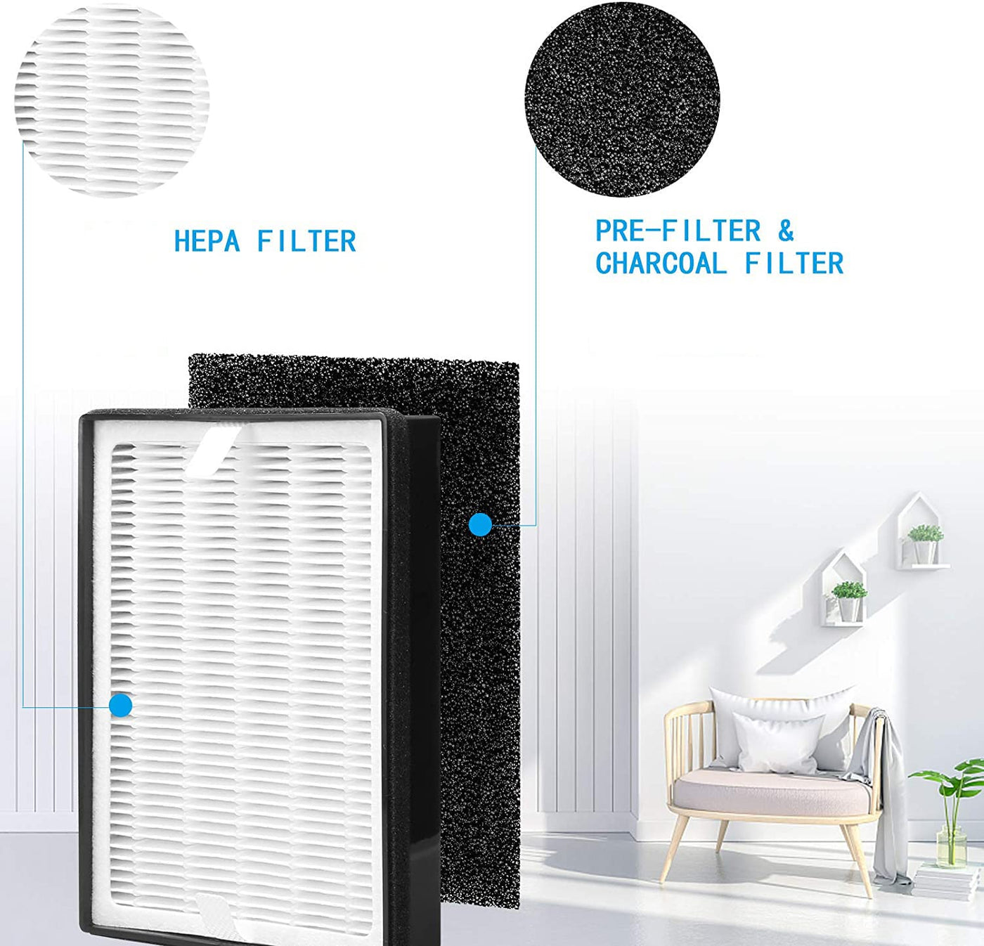 Keyjiniu H126 Replacement Hepa Filter, Compatible With Levoit Lv H126, Includes 2 Hepa Filters And 8 Activated Carbon Pre Filter