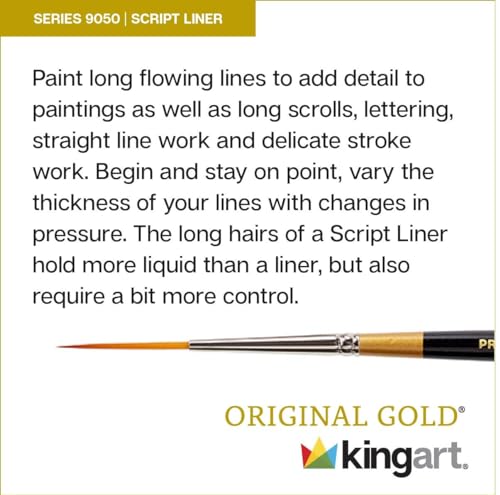Kingart Original Gold 9050-2 Script Liner Series Premium Golden Taklon Multimedia Artist Brushes
