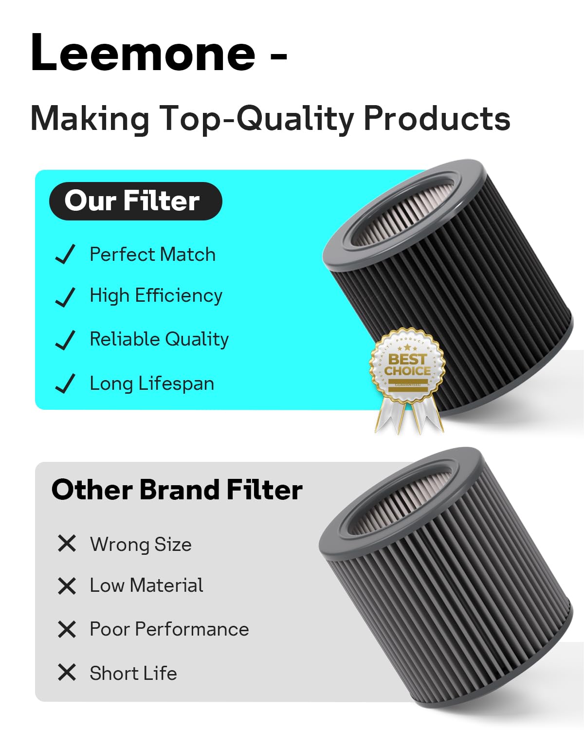 Q: What are the features of the Leemone True HEPA Filter?A: The Leemone True HEPA Filter utilizes a 3-stage high-efficiency technology. It includes a pre-filter for larger particles, an activated carbon filter for odors, and a true HEPA filter that captures 99.97% of airborne particles as small as 0.3 microns, making it excellent for dust, pet dander, and smoke.