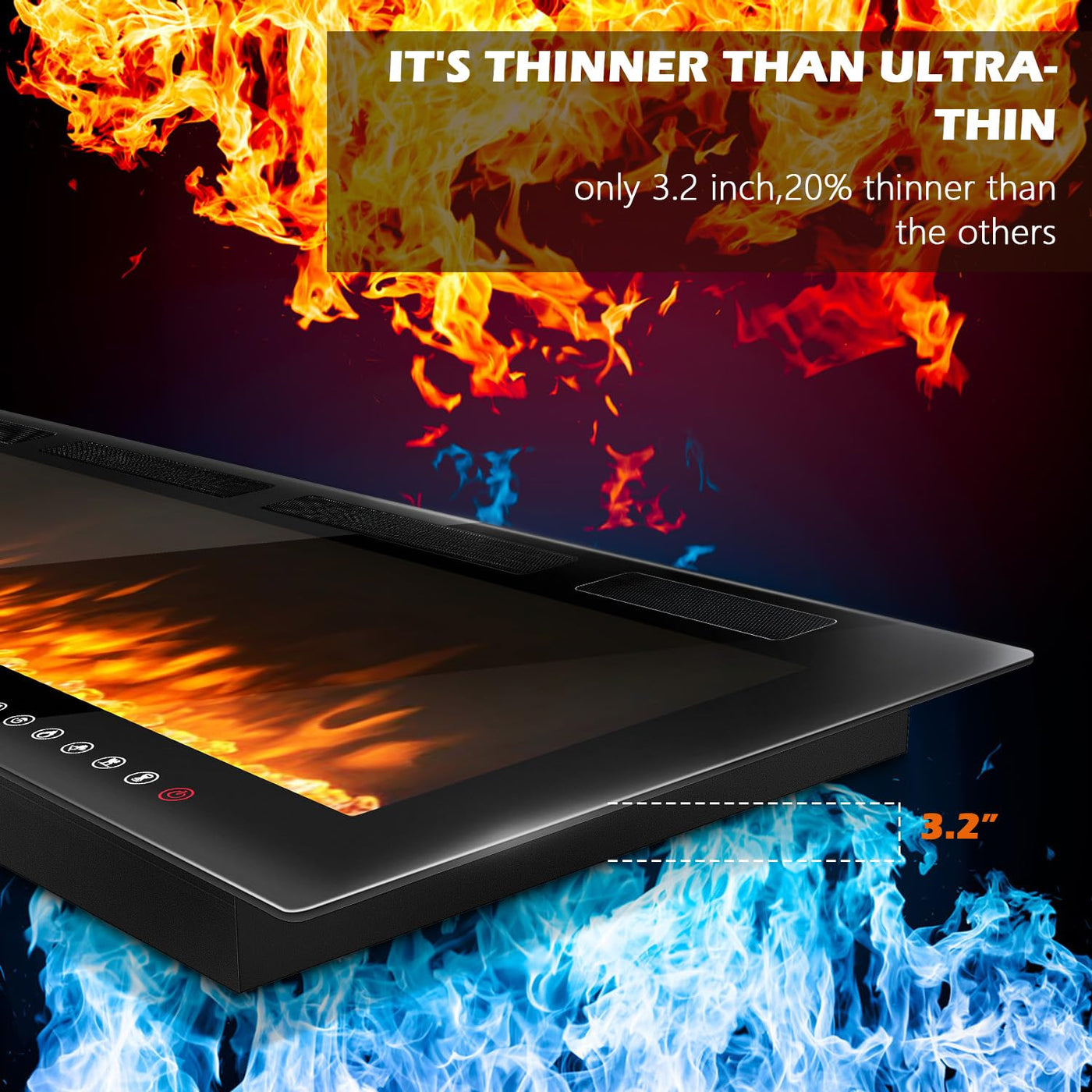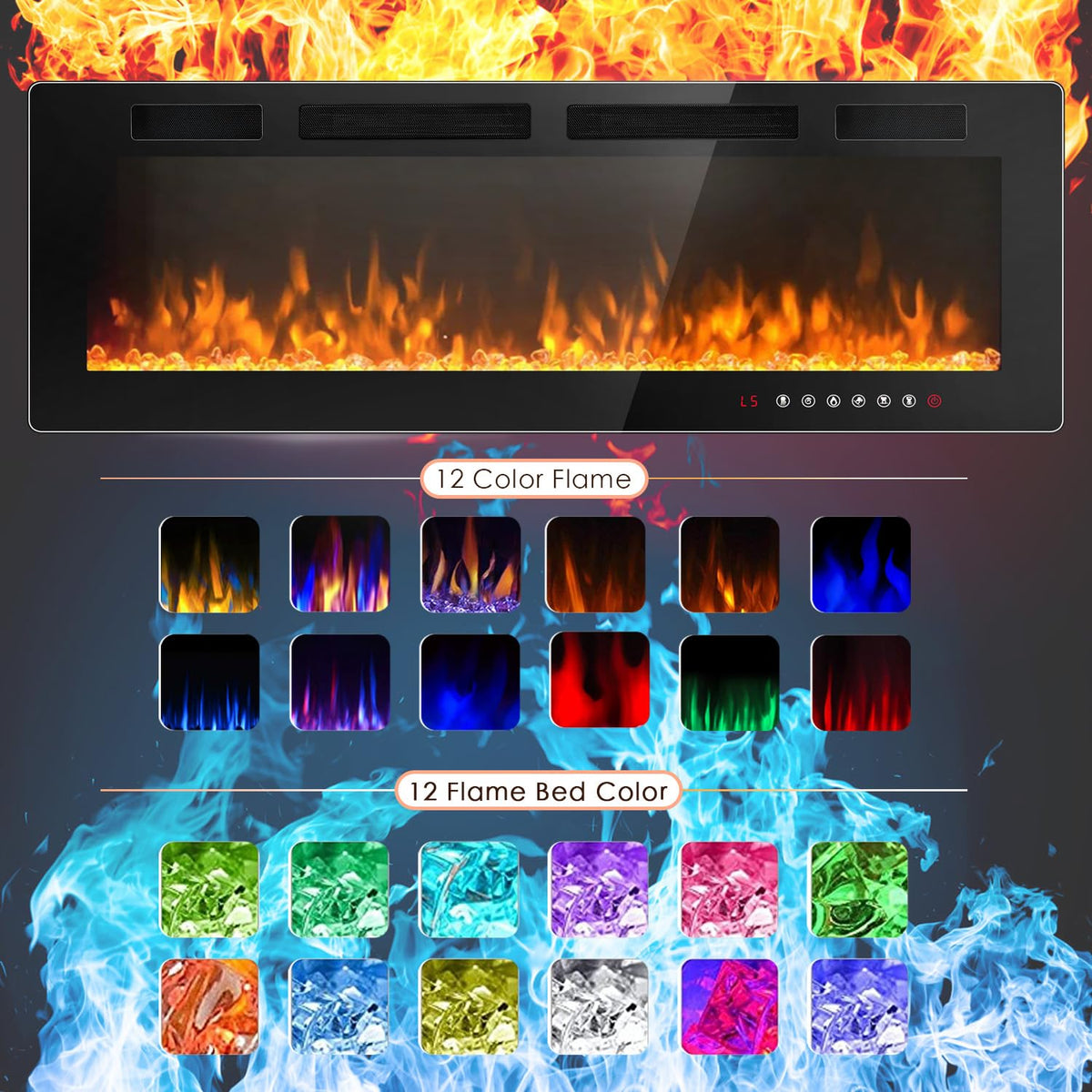 Lemberi 72 Inch Electric Fireplace Recessed And Wall Mounted,750/1500W Fireplace Heater And Linear Fireplace With Touch Screen C