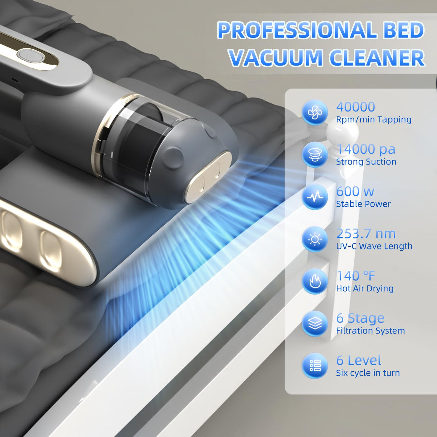 Q: Is this bed vacuum cleaner cordless?A: Yes, this bed vacuum cleaner is cordless, allowing for hassle-free cleaning without the limitations of a power cord. It also includes a USB charging mode for convenience.
