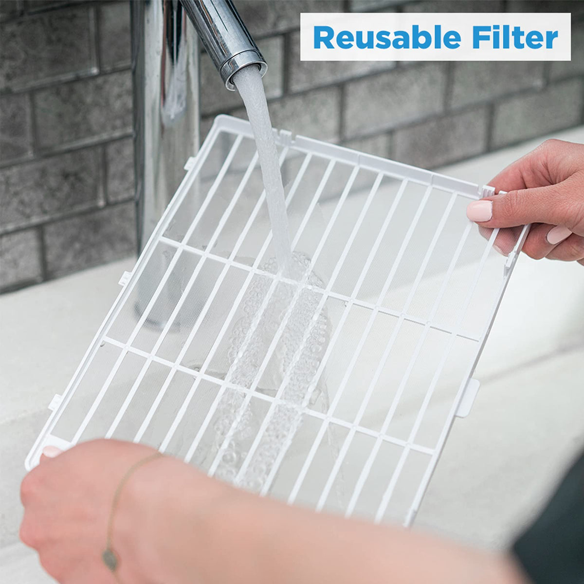Q: Is the air filter washable, and how often should it be cleaned?A: Yes, the Midea Portable Air Conditioner features a washable and reusable air filter. It is recommended to clean the filter every week to maintain optimal performance and air quality.