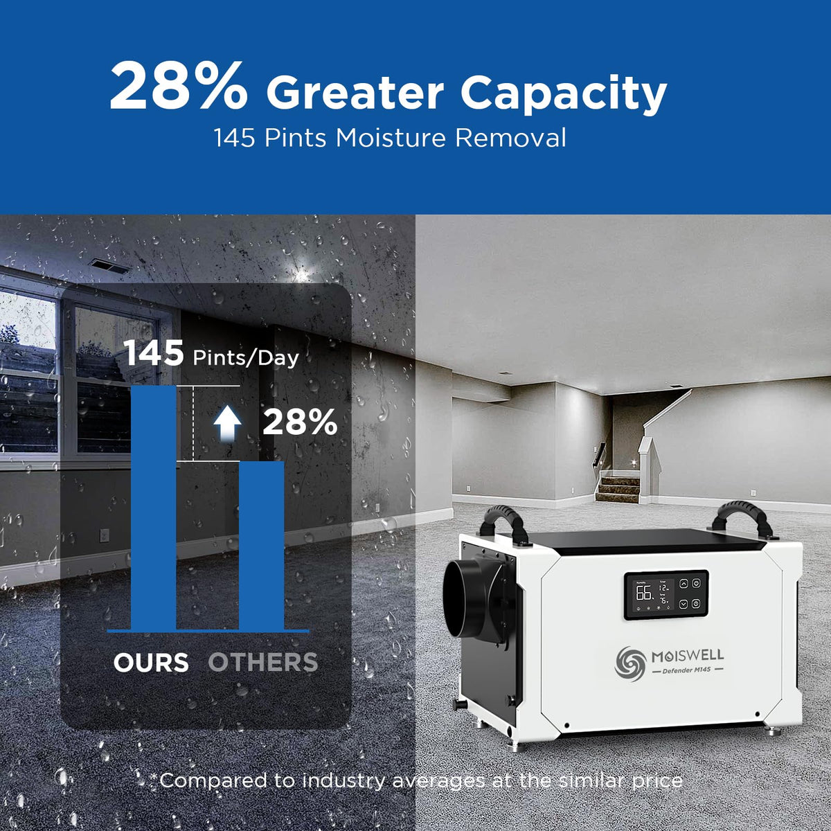 Moiswell 145 Pints Commercial Dehumidifier For Crawl Space And Basement.