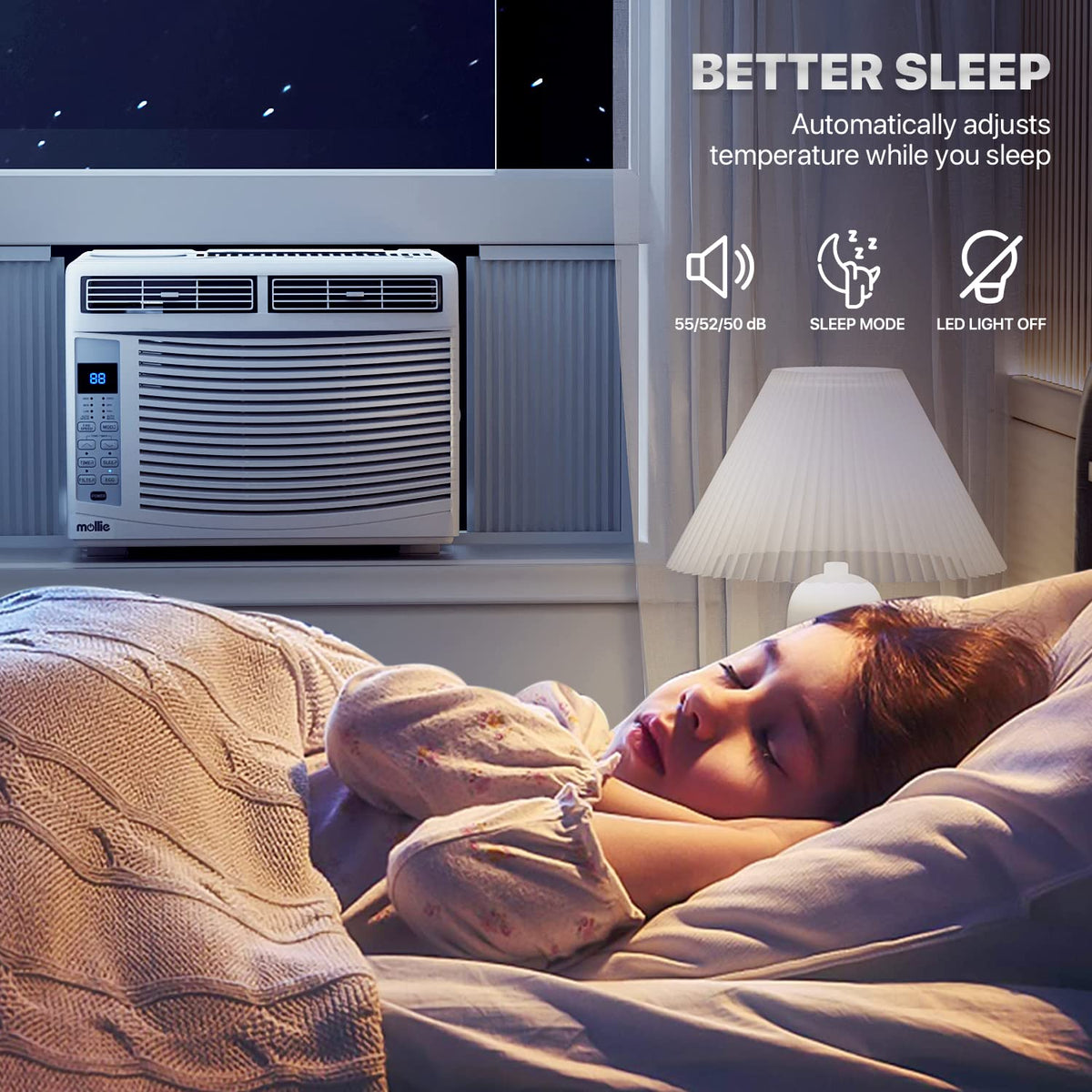 Mollie 6000 Btu Window Air Conditioner, Ac Window Unit With Washable Filter, Remote, Dehumidifier, Fan, Cools Up To 250 Square F