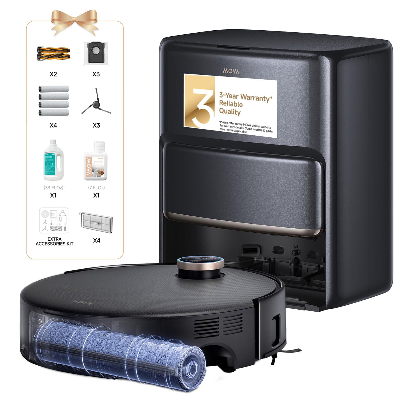MOVA Z60 Ultra Roller Complete Robot Vacuum and Mop, 28,000Pa Suction, Roller Real-Time Flutting Self-Washing, Auto Carpet Shiel