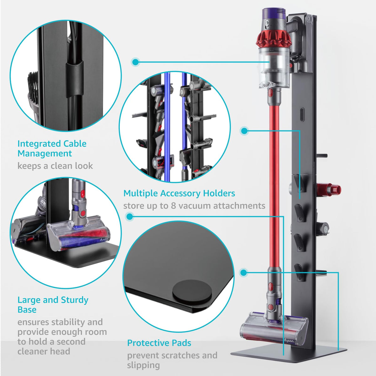 The Dyson Vacuum Cleaner Stand - A Floor Stand That Provides A Convenient And Efficient Storage Solution For Your Dyson Vacuum Cleaner. With Easy Assembly And No Drilling, This Stand Is Designed To Simplify Your Cleaning Routine While Saving Valuable Floor Space. Constructed From Lightweight Aluminum, This Stand Has A Sleek Appearance That Blends Effortlessly With A Variety Of Home D Cor Styles. Its Sleek And Compact Design Ensures It Doesn'T Take Up Unnecessary Space, Making It Ideal For Apartments And Small Homes. With A Solid Base, This Stand Offers Enhanced Stability During Use, Preventing Accidental Tipping Or Falling. The Non-Slip Silicone Pad Design On The Bottom Not Only Provides Extra Stability, But Also Protects Your Floors From Scratches. One Of The Outstanding Features Of This Vacuum Stand Is Its Ability To Store Up To 8 Vacuum Accessories. No More Searching Through Cluttered Cabinets Or Misplacing Attachments. In Addition To Its Functional Design, This Stand Also Includes A Cord Storage Feature That Helps Keep Your Vacuum Cord Organized.