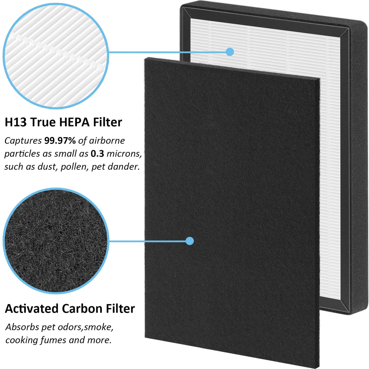 Q: Do the ProHEPA 9000 filters include activated carbon?A: Yes, the ProHEPA 9000 filters come with a 2-in-1 design that combines an activated carbon pre-filter with the H13 True HEPA filter for enhanced air purification.