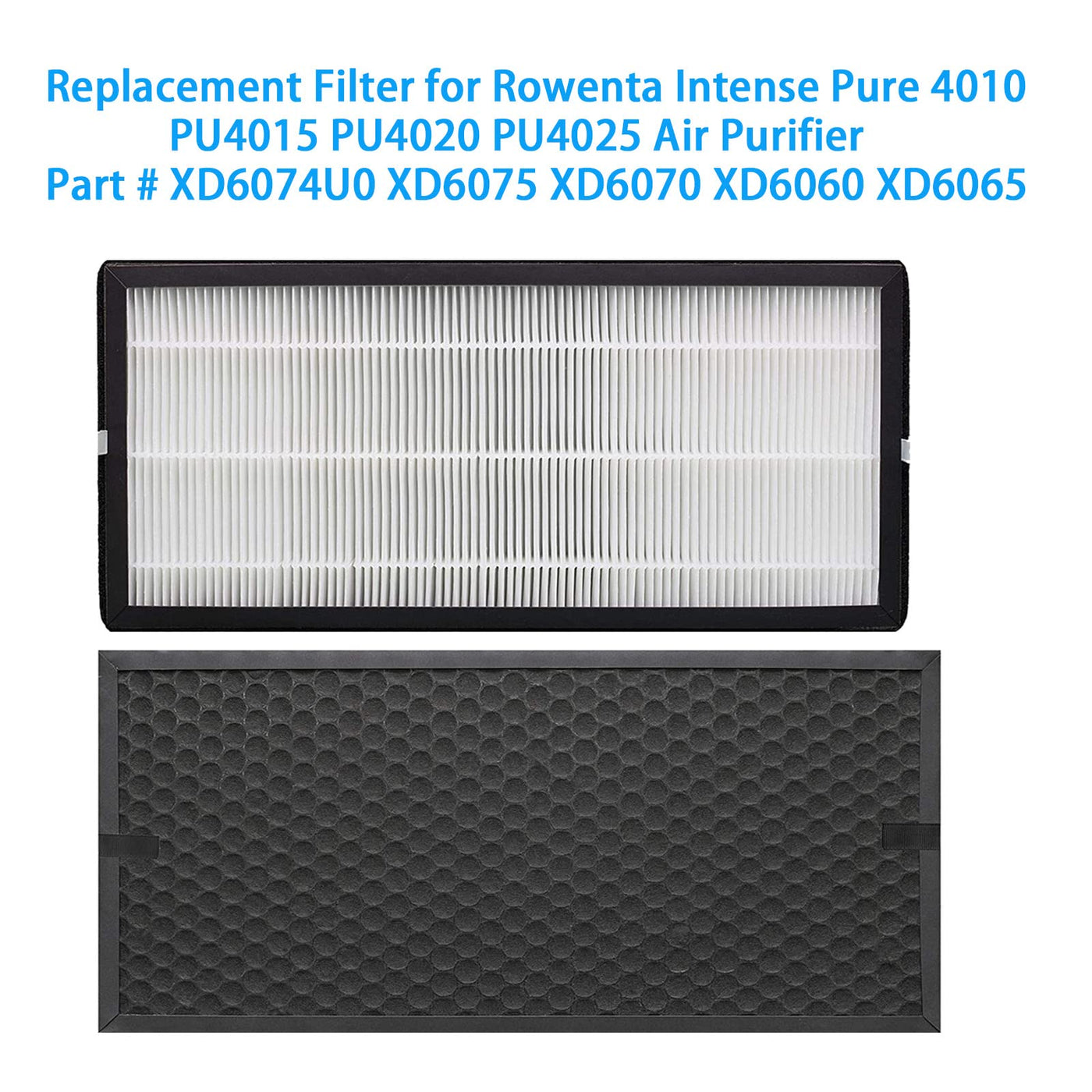Adaptation Model: Compatible With Rowenta Intense Pure 4010 Pu4015 Pu4020 Pu4025 Air Purifier. Part # Xd6074U0 Xd6075 Xd6070 Xd6060 Xd6065. Package Included: 1 Pack Ture Hepa Filters 1 Pack Activated Carbon Filters Easy To Replace: Just Remove The Old Filter And Install This Brand New Filter In Its Original Position. After-Sales Guarantee: 3 Months Free Replacement Or Refund For Quality Problems; If You Have Any Questions, Please Contact Us Via Email, We Will Serve You Wholeheartedly.
