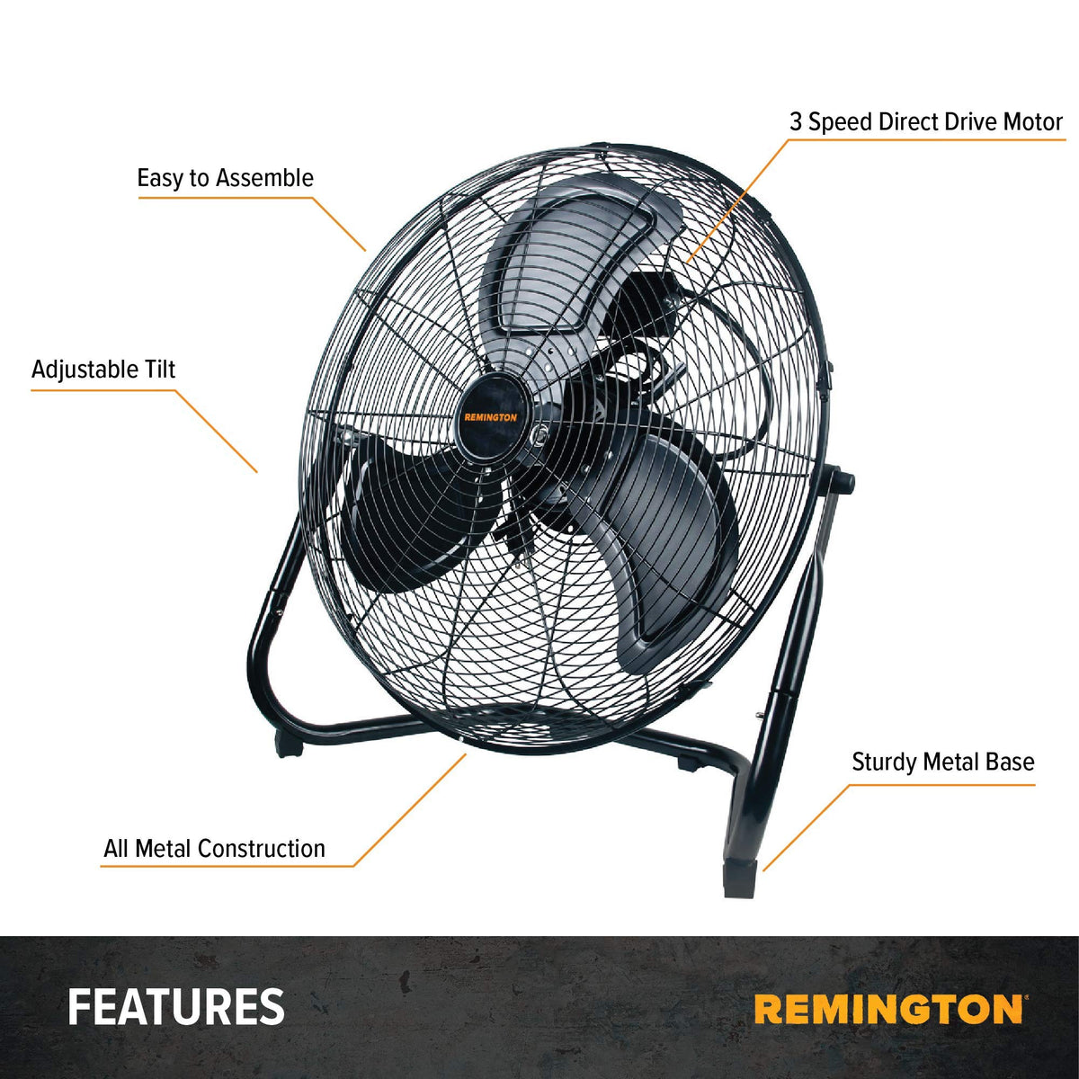 Master Remington 20 High Velocity Floor Fan - 3 Speed Heavy Duty Metal Airflow for Large Shops, Garages, and Warehouses, Black