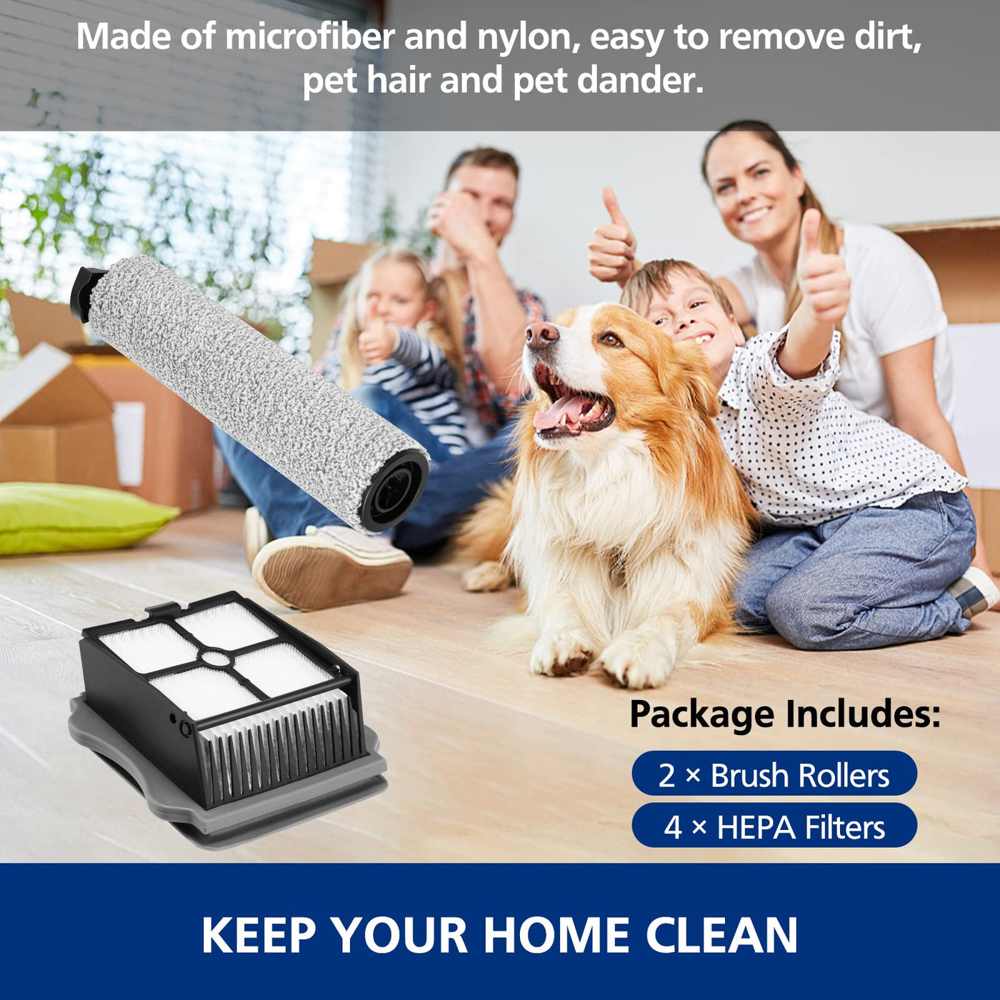 Roller Brush Replacement Parts Compatible With Tineco Ifloor 3/ Floor One S3 Cordless Vacuum Cleaner, 2 Pack Brush Rollers + 4 P