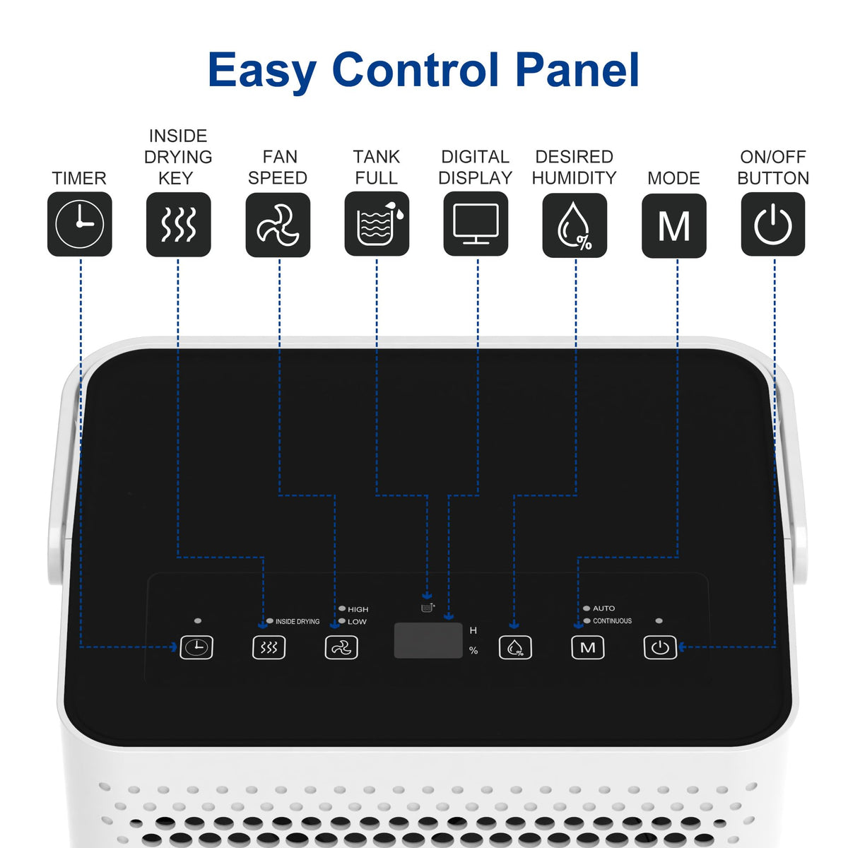 Q: What maintenance is required for the Shinco 30 Pints Dehumidifier?A: Maintenance is minimal with the Shinco dehumidifier. It features a removable PP filter for easy cleaning and an inside drying function to keep the unit dry when not in use. Regularly check and empty the water reservoir as needed.