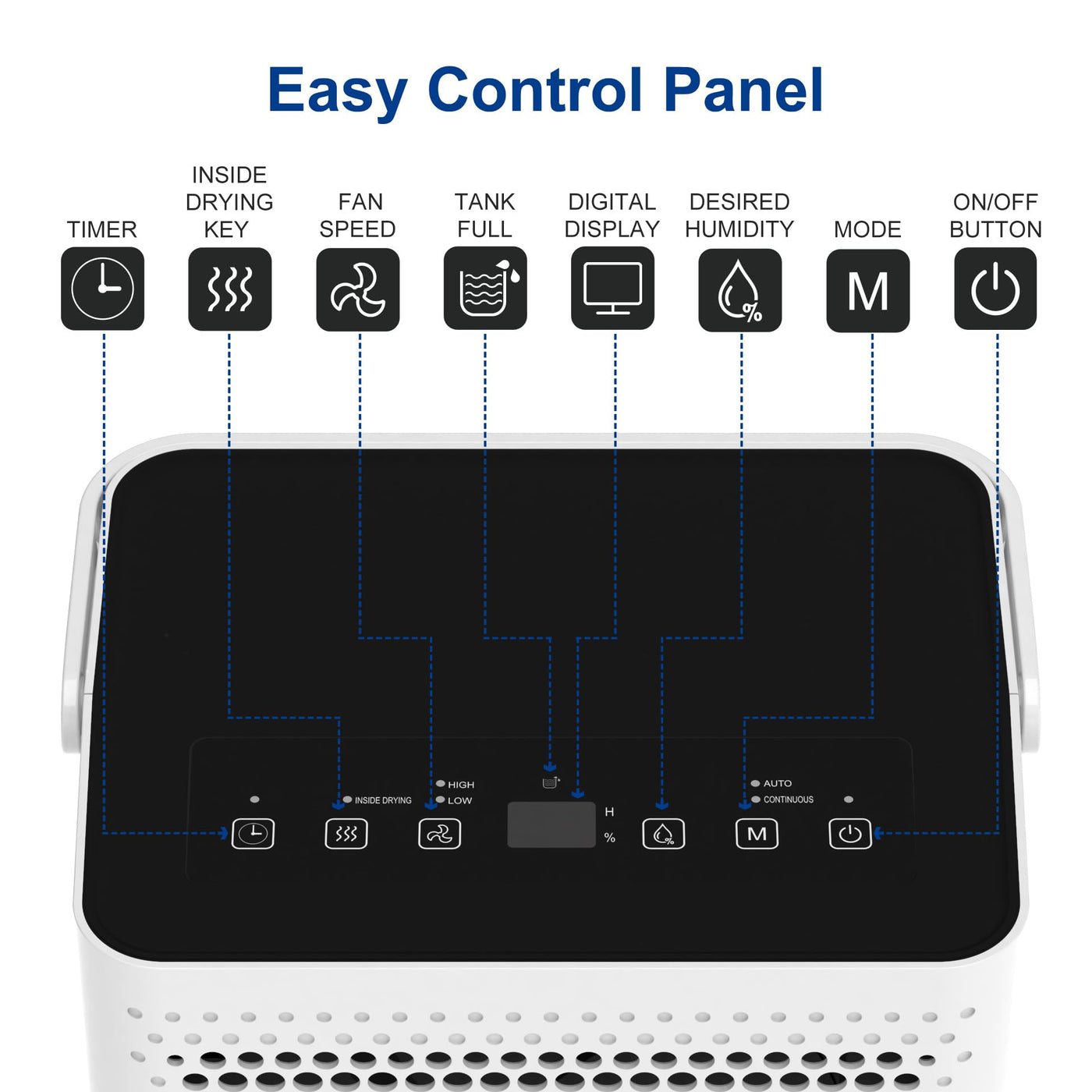 Q: Can I adjust the humidity levels with the Shinco dehumidifier?A: Yes, this dehumidifier features an intelligent dehumidification mode that allows you to set desired humidity levels between 45%-55%. The unit will automatically adjust its operation to maintain the set humidity.